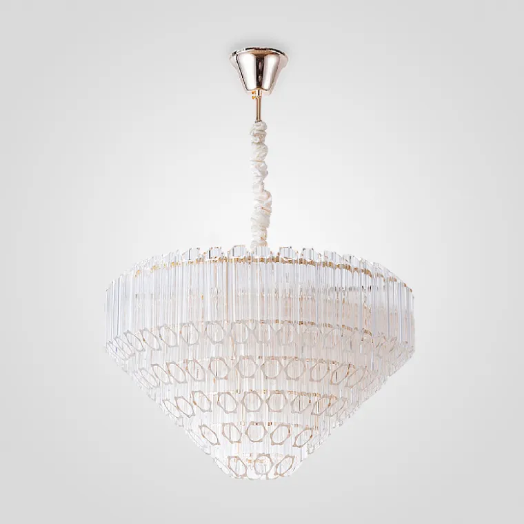 Люстра с каскадным абажуром из хрустальных многогранных трубочек