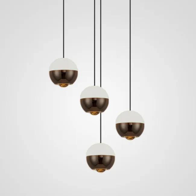 Серия светодиодных люстр на лучевом каркасе с поворотными плафонами шарообразной формы с оптическими линзами