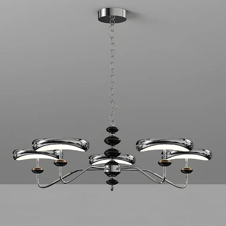 Позвольте представить вам уникальную серию подвесных люстр, которая перевернёт ваше представление о современном освещении. Эти шедевры с дисковидными плафонами и изысканными декоративными элементами на корпусе буквально погружают вас в мир футуризма и элегантности.