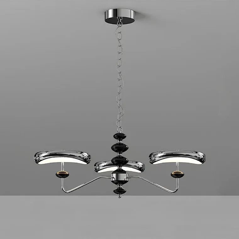 Каждая подвесная люстра этой серии словно пришла из будущего. Дисковидные плафоны создают ощущение невесомости и свободы. Хромированный корпус с изогнутыми вверх направляющими добавляет ощущения динамики и движения, а центральные декоративные шарообразные вставки придают творческую изюминку, превращая каждую люстру в настоящее произведение искусства.
