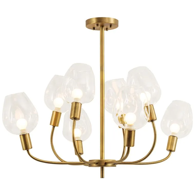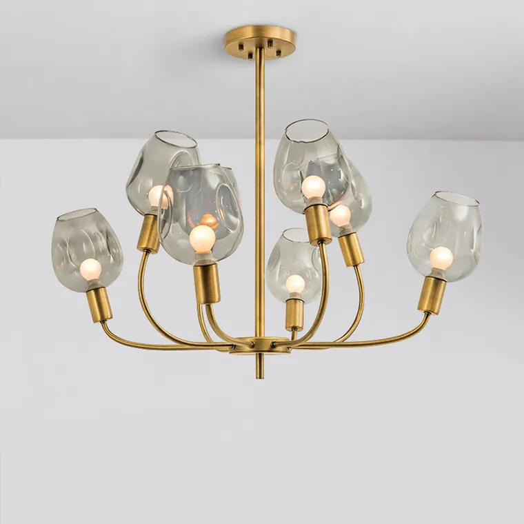 Конструкция подвесной люстры BLOOM — настоящий гимн флоре. Форма светильника повторяет раскрывающийся цветочный бутон, привнося в интерьер невероятной изысканности. Золотистый каркас добавляет роскоши пространству. Светодиодные лампочки, бликуя на прозрачных гранях стеклянных плафонов, создают восхитительную игру света в помещении. Люстра из коллекции BLOOM идеальна для частных домов, а также отелей и ресторанов.