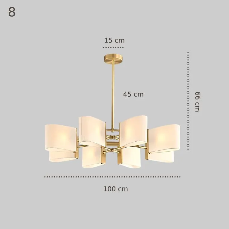 Люстра с текстильными рассеивателями прямоугольной формы на латунном каркасе