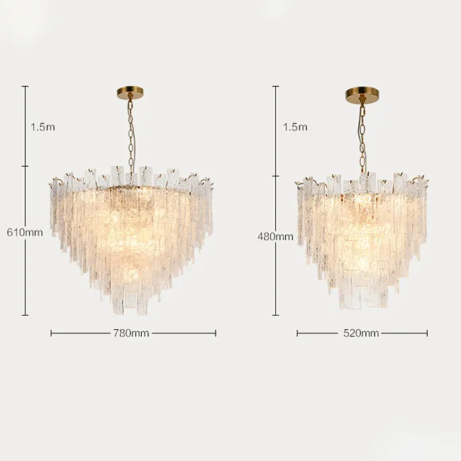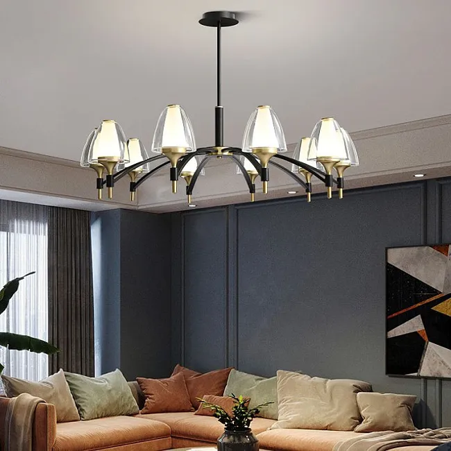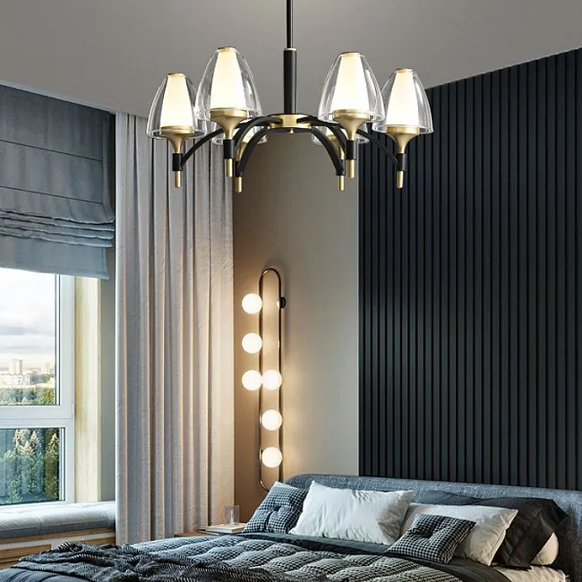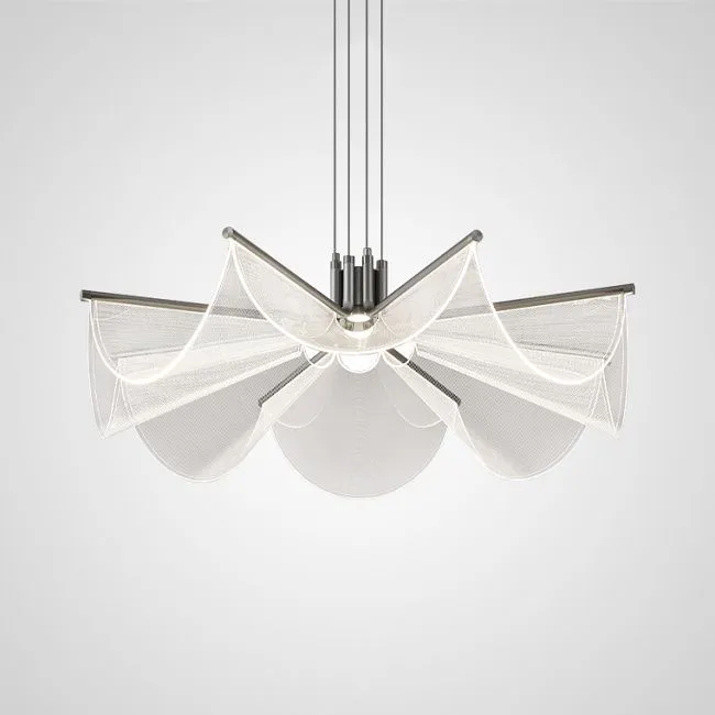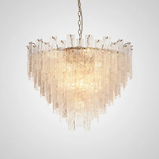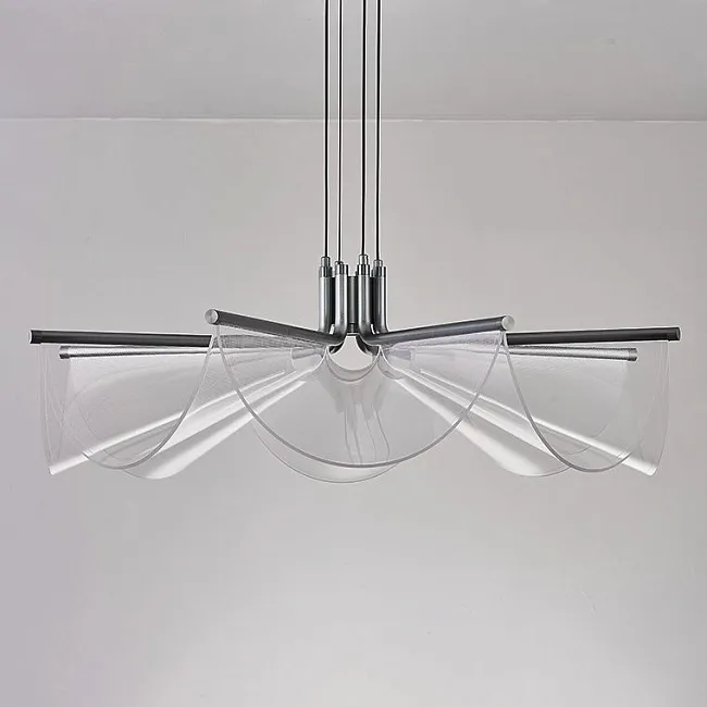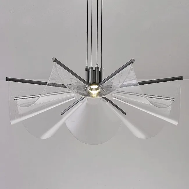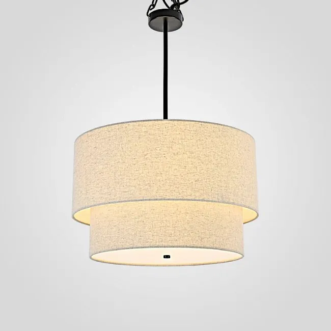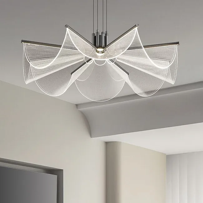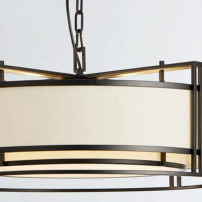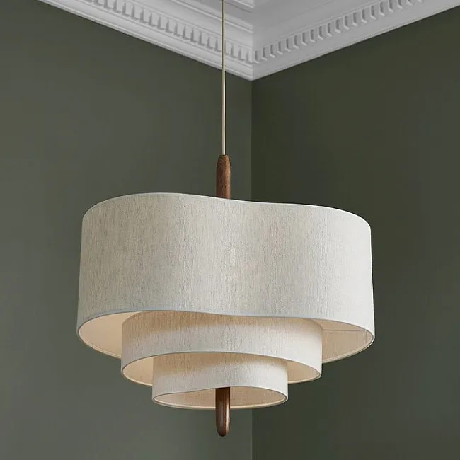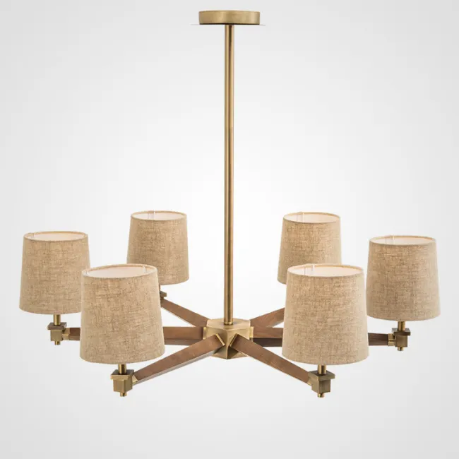 Люстра с текстильными рассеивателями прямоугольной формы на латунном каркасе