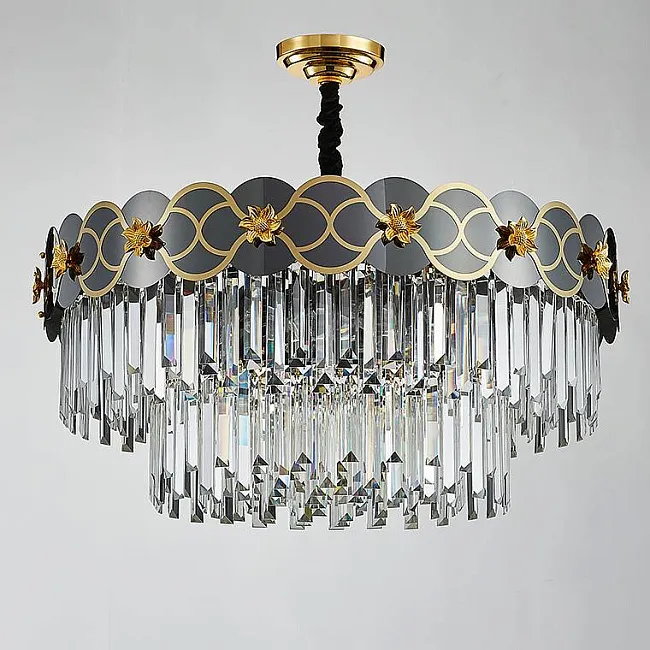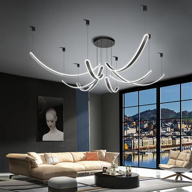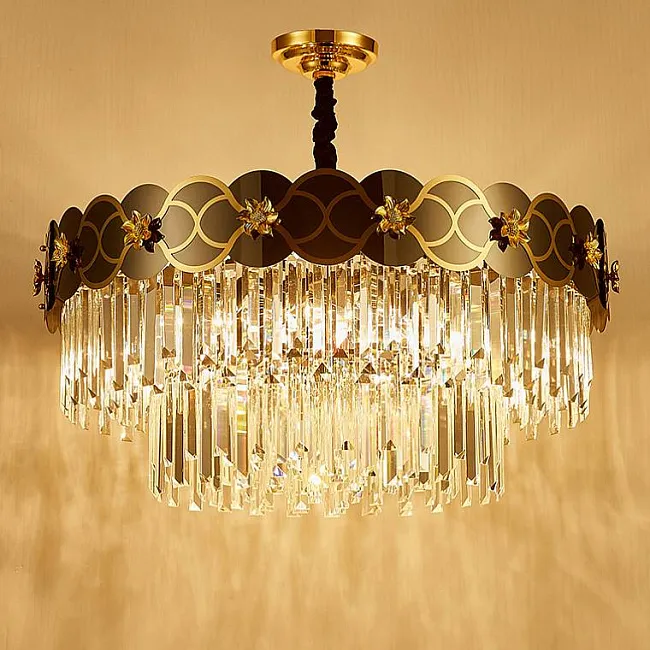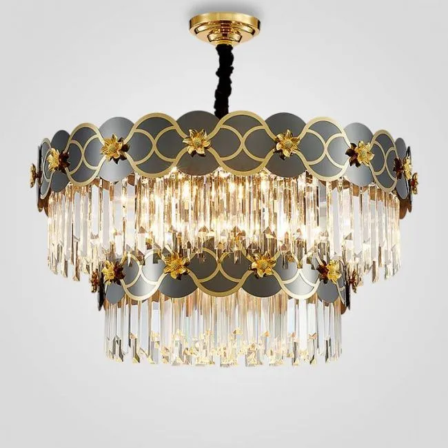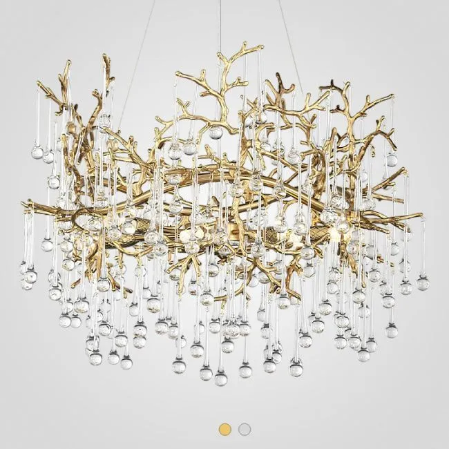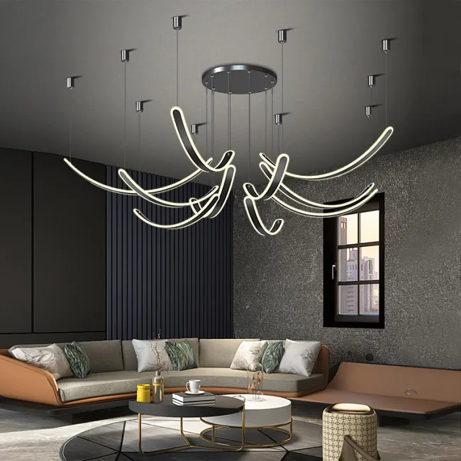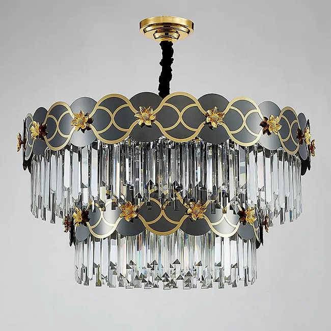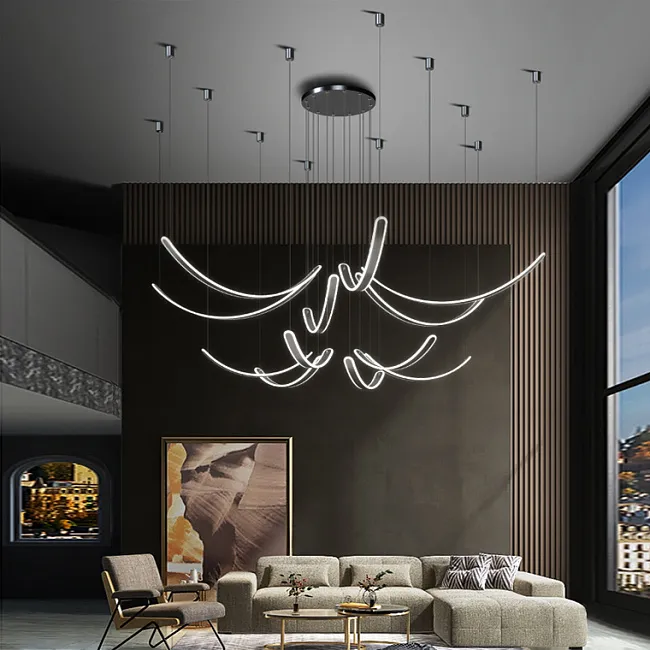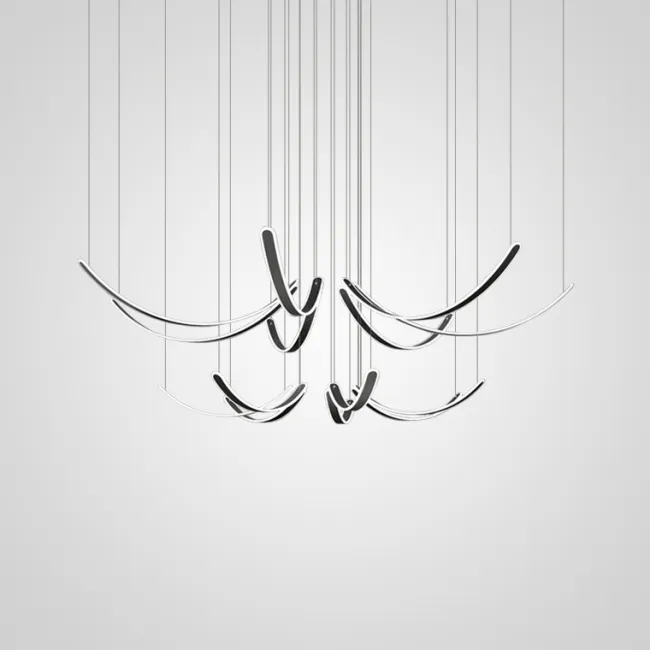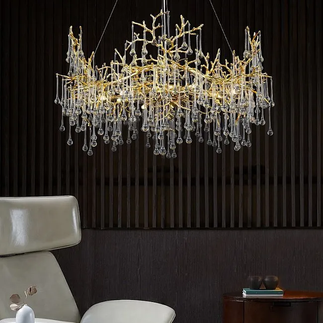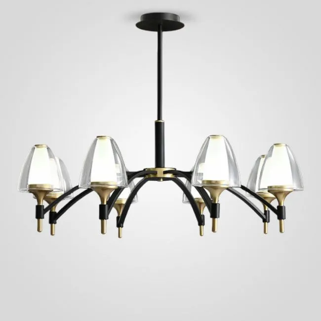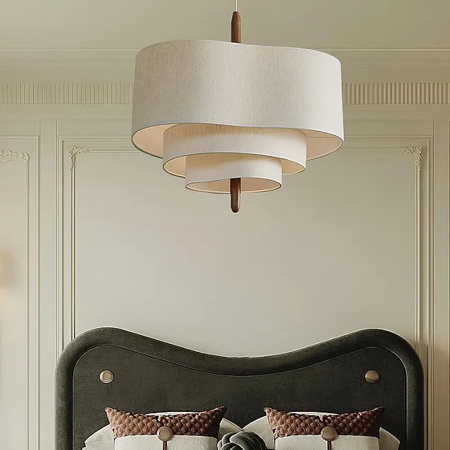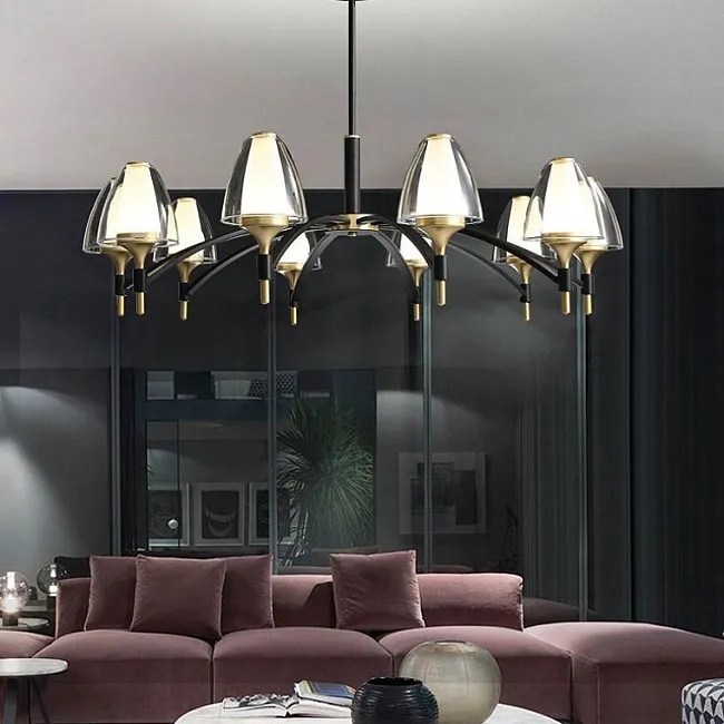 Люстра с текстильными рассеивателями прямоугольной формы на латунном каркасе