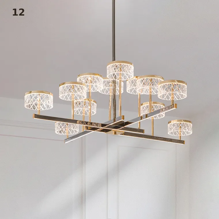 Серия светодиодных люстр с прозрачными плафонами цилиндрической формы с ромбическим рельефом