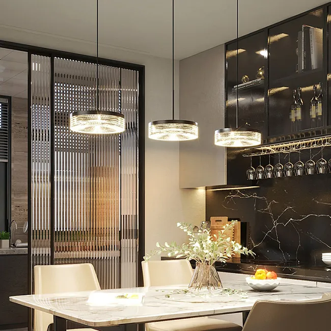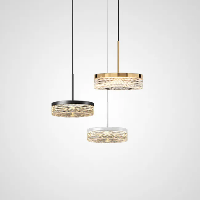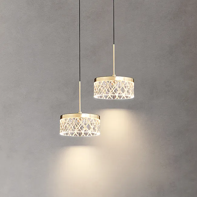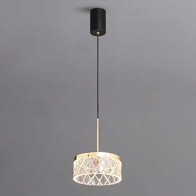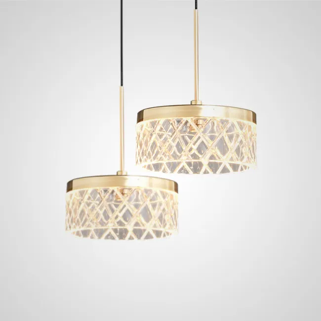 Серия светодиодных люстр с прозрачными плафонами цилиндрической формы с ромбическим рельефом