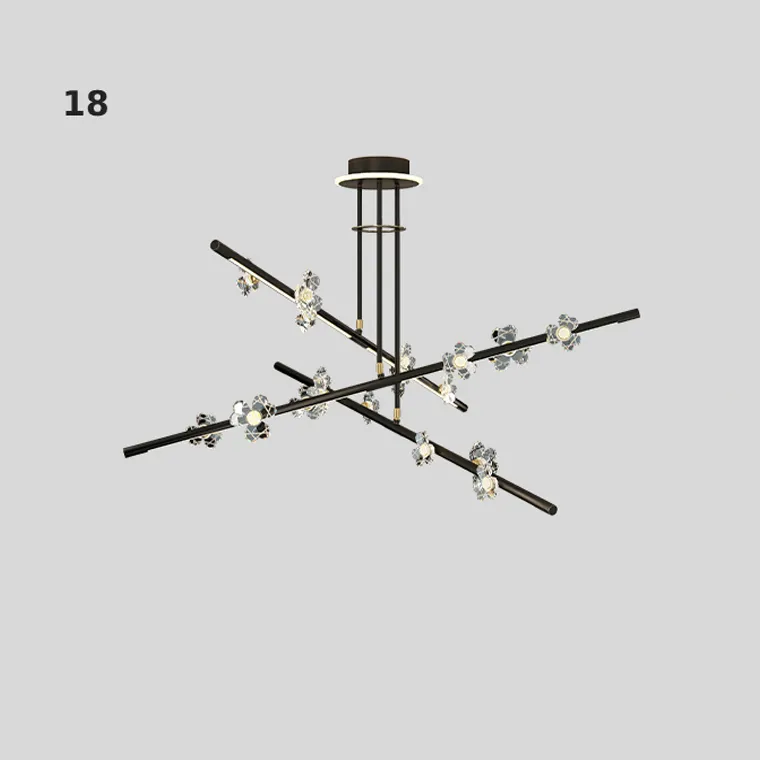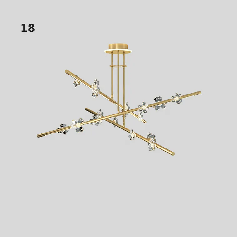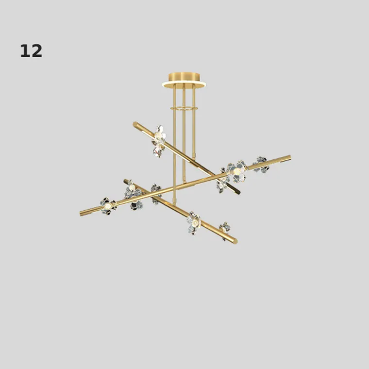 Серия светодиодных люстр с прозрачными рассеивателями в виде цветов на лучевом корпусе из латуни