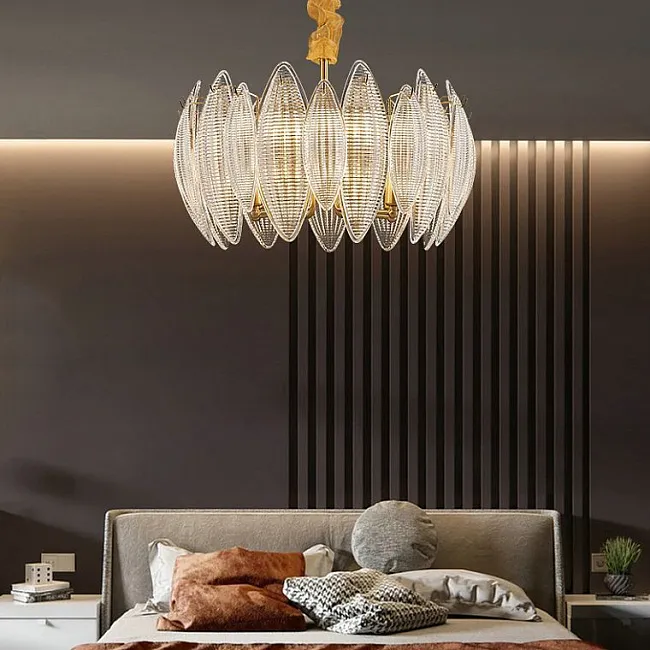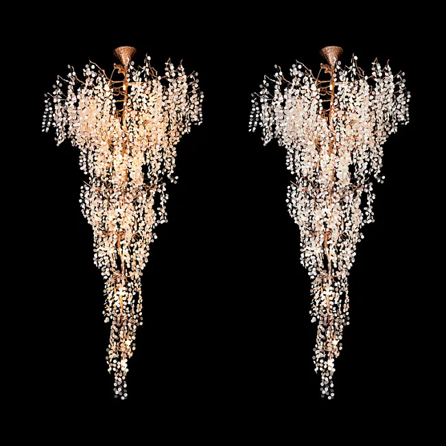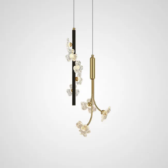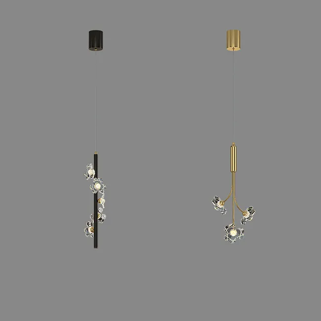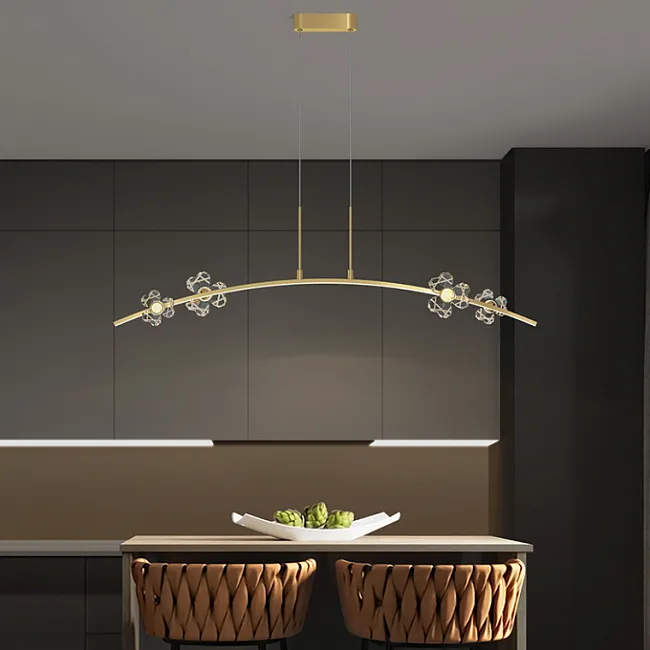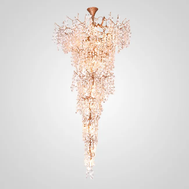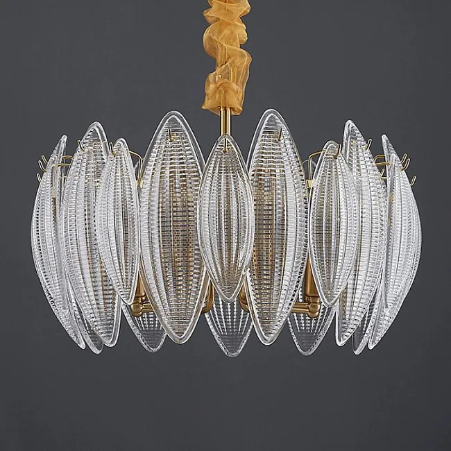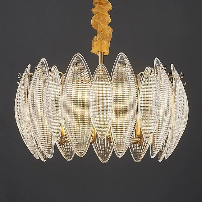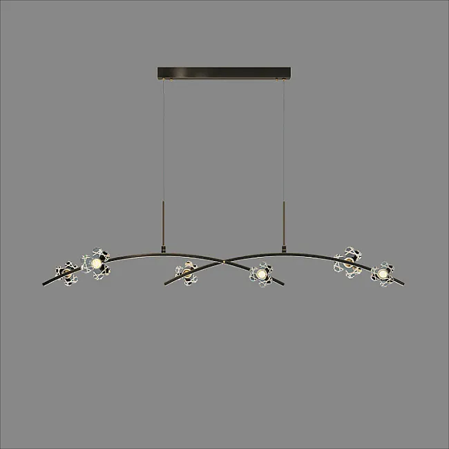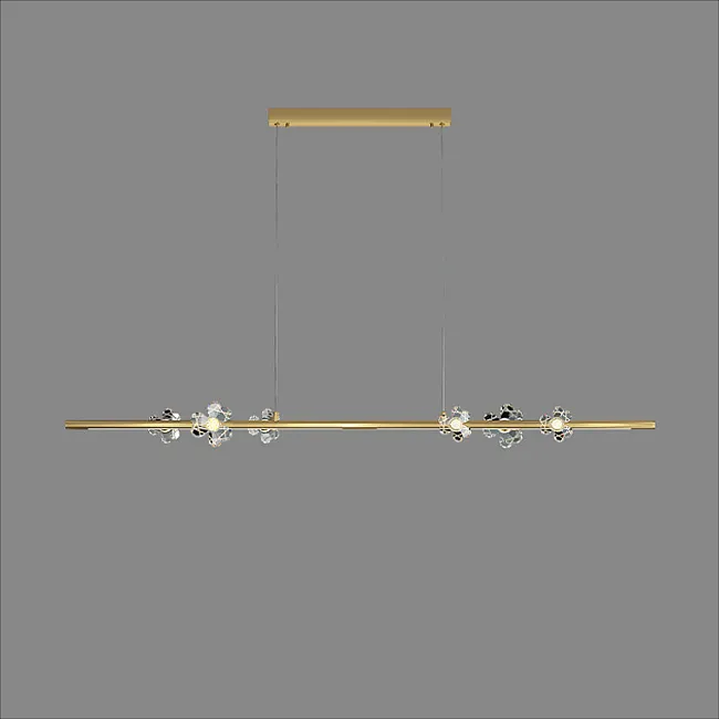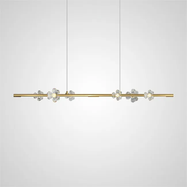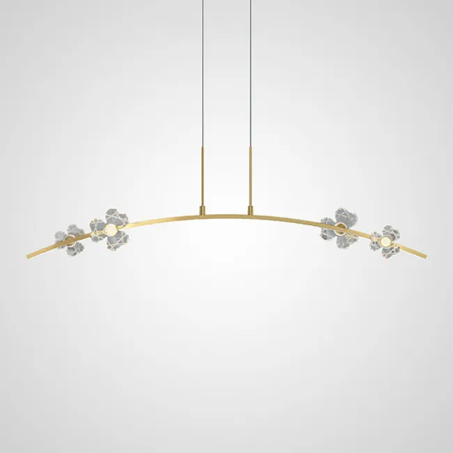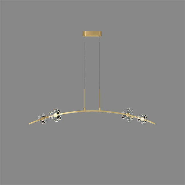 Серия светодиодных люстр с прозрачными рассеивателями в виде цветов на лучевом корпусе из латуни