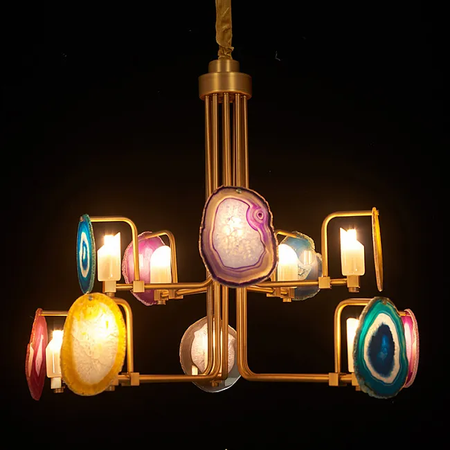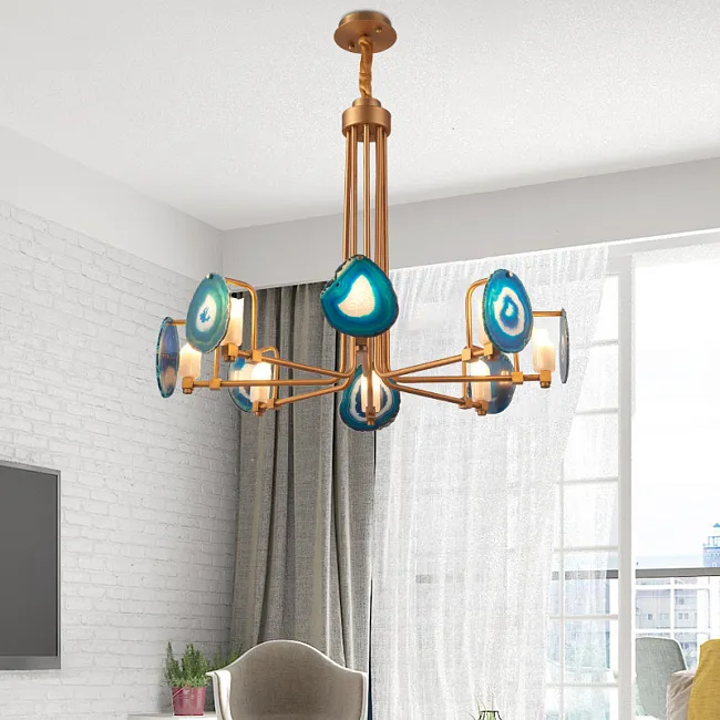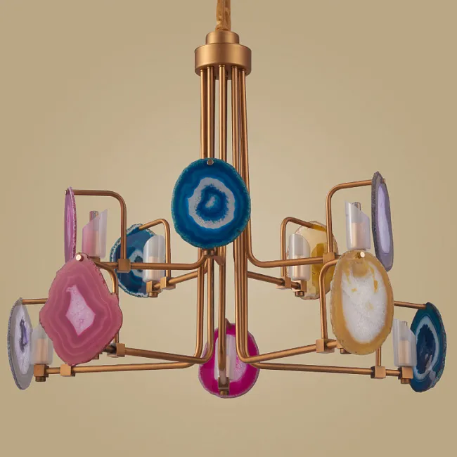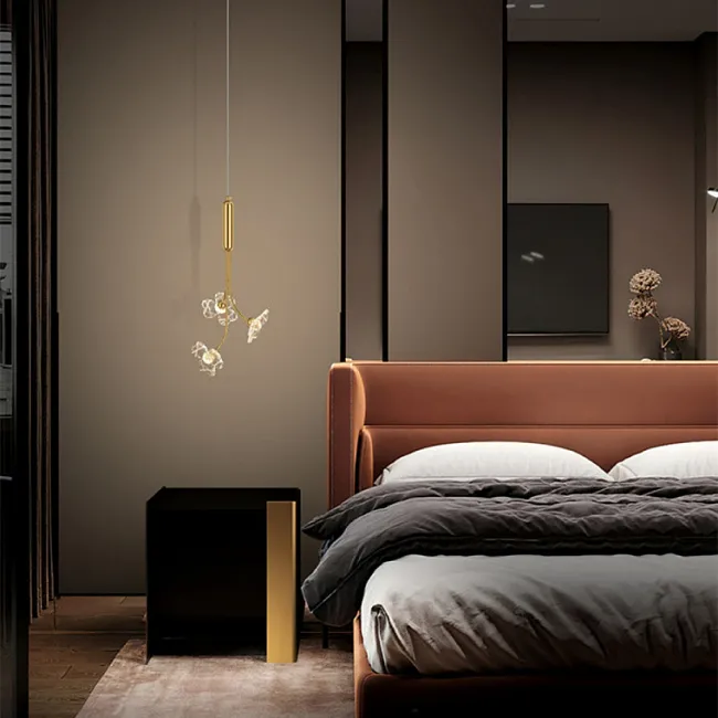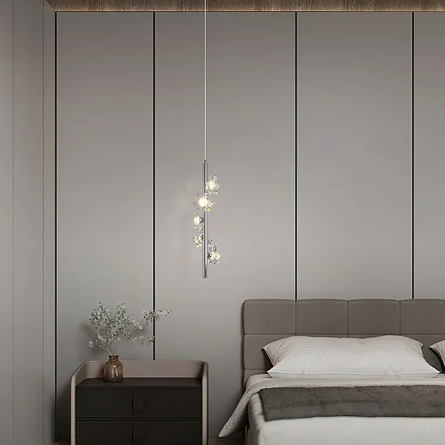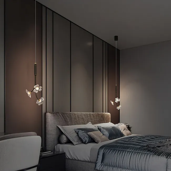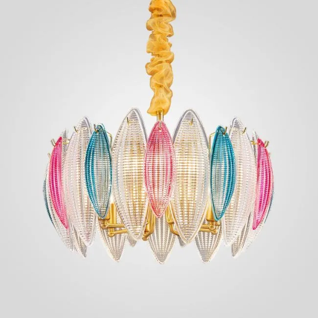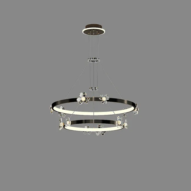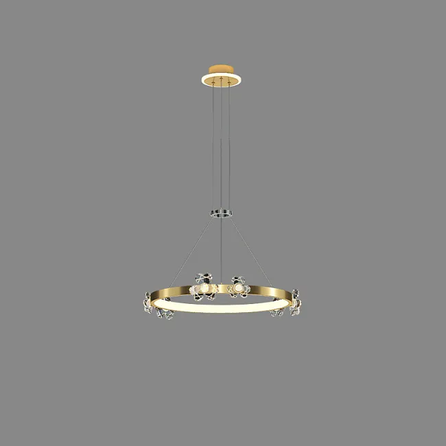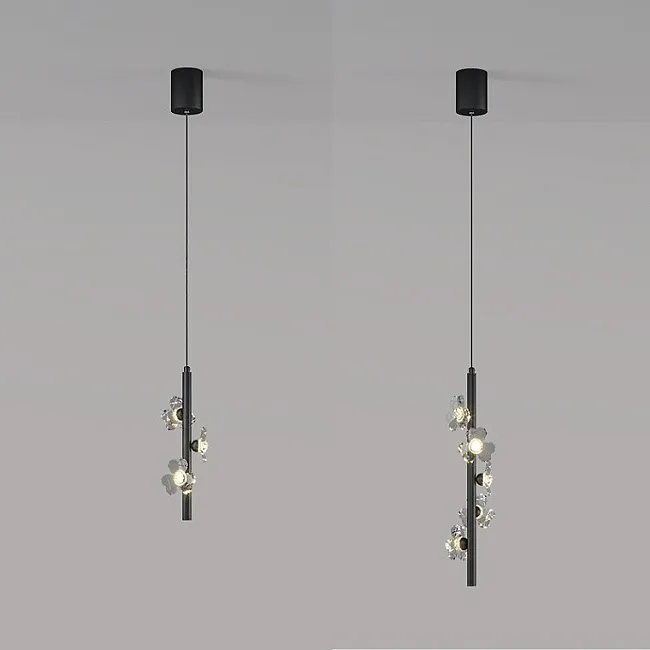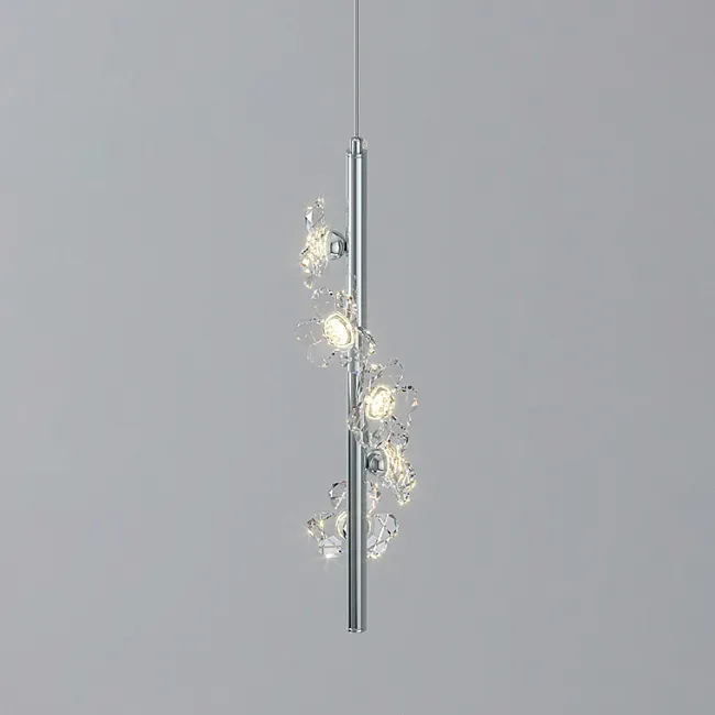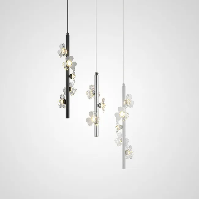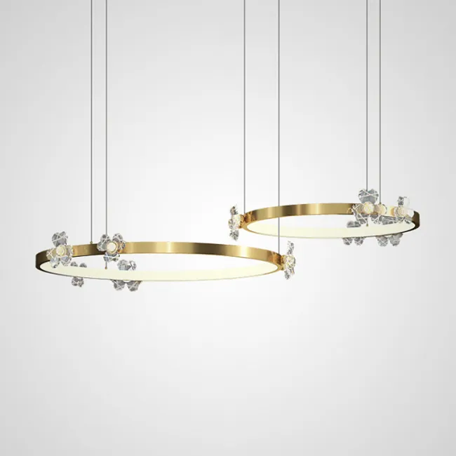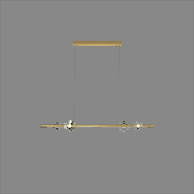 Серия светодиодных люстр с прозрачными рассеивателями в виде цветов на лучевом корпусе из латуни