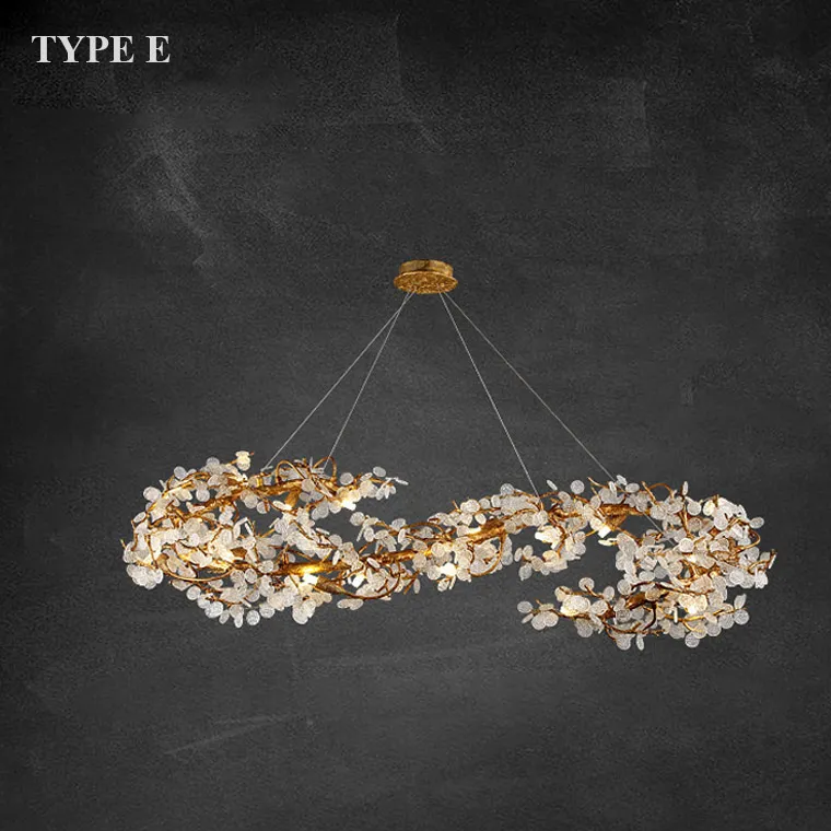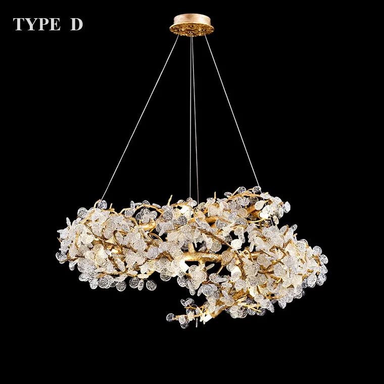 Серия премиальных дизайнерских люстр с ветвистым абажуром из стеклянных рельефных подвесок в виде монеток
