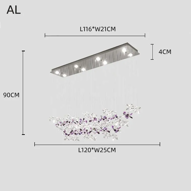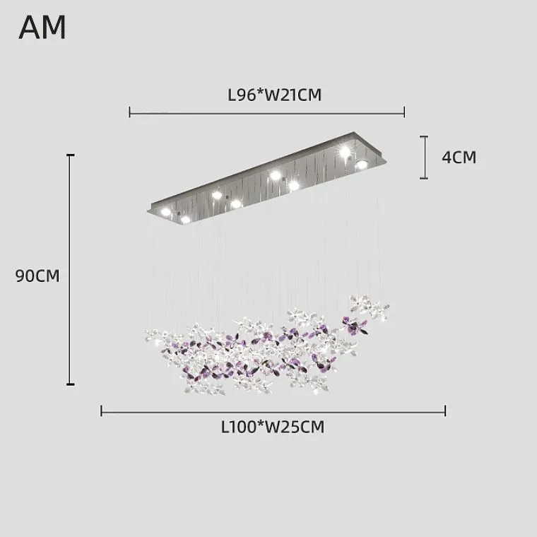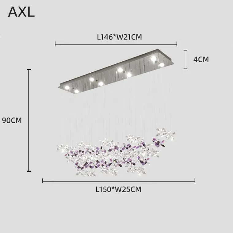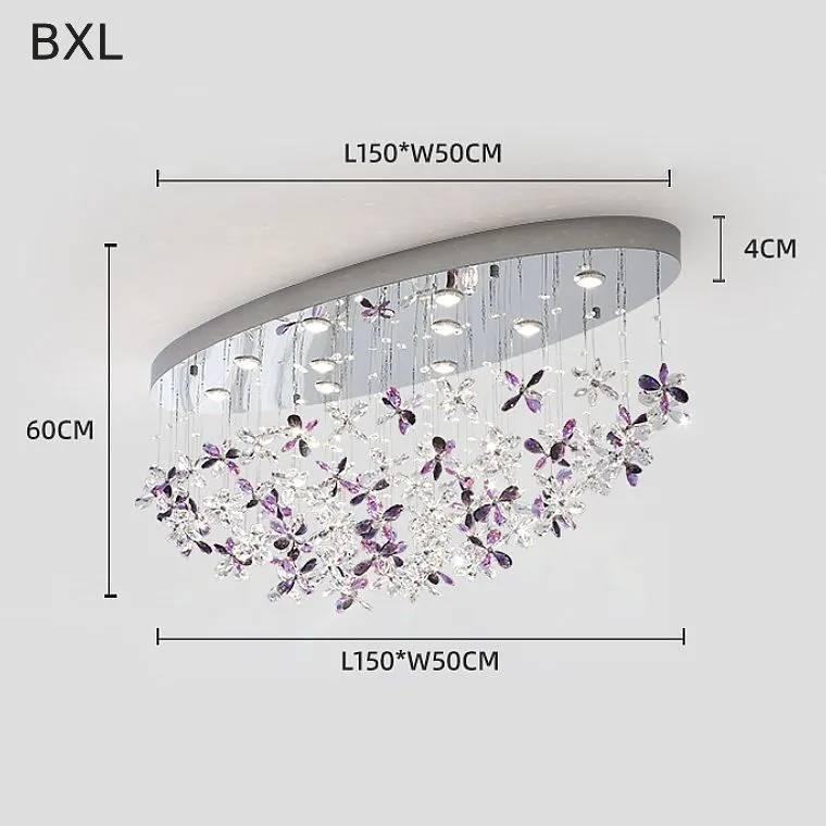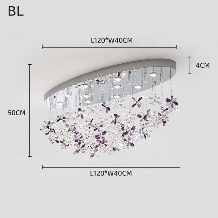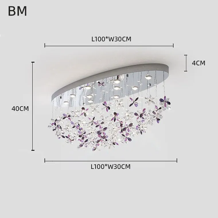 Серия светодиодных инсталляций из подвесных хрустальных элементов в форме цветков на потолочном основании с точечными источниками света