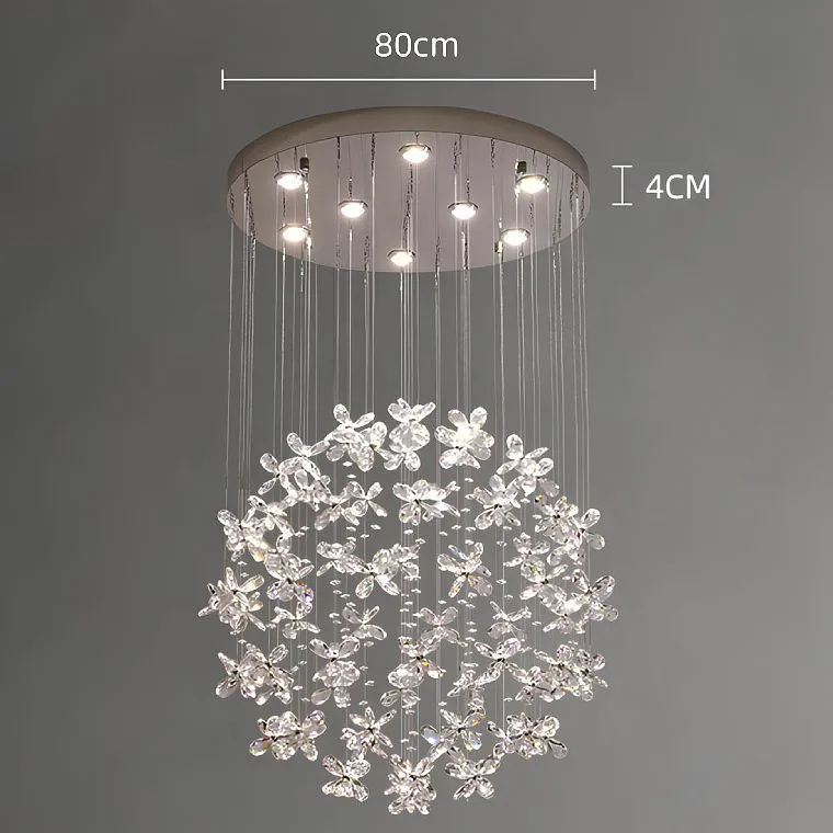 Светодиодная люстра шарообразной формы с хрустальными рассеивателями в виде цветов