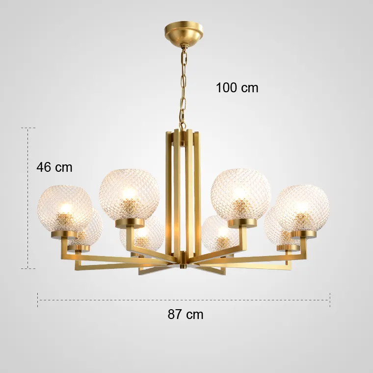 Люстра в американском стиле с круглыми плафонами из рифленого стекла