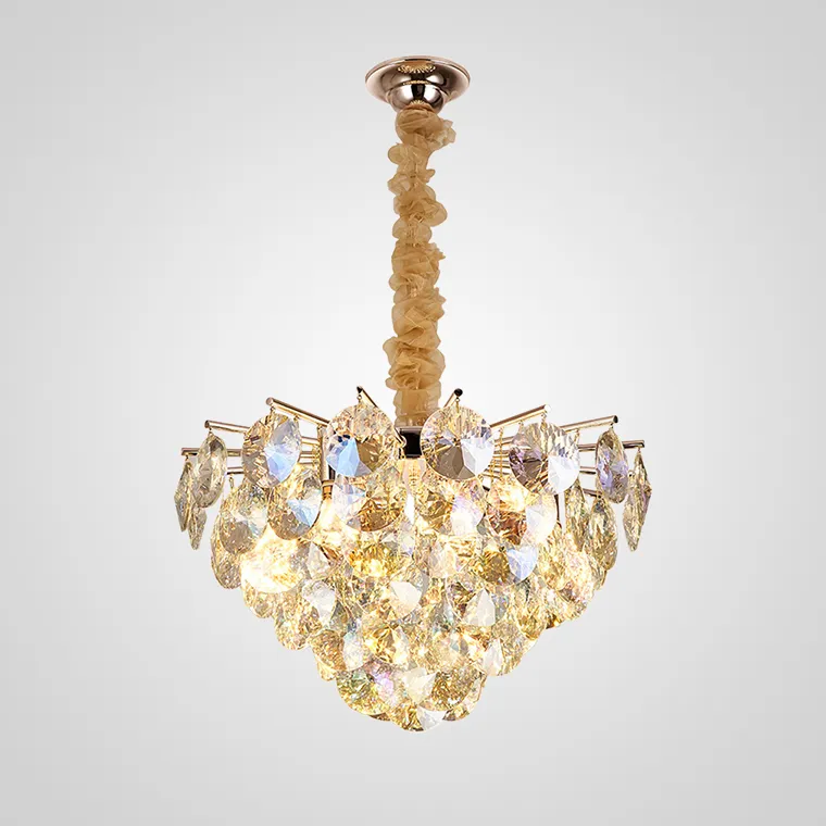 Многослойная люстра с абажуром из граненых хрустальных пластин дисковидной формы