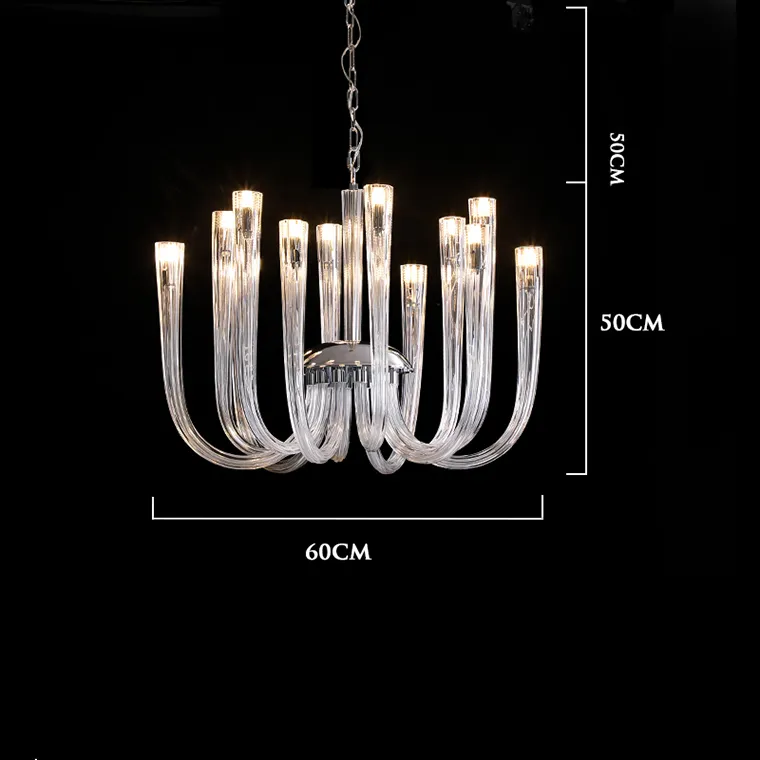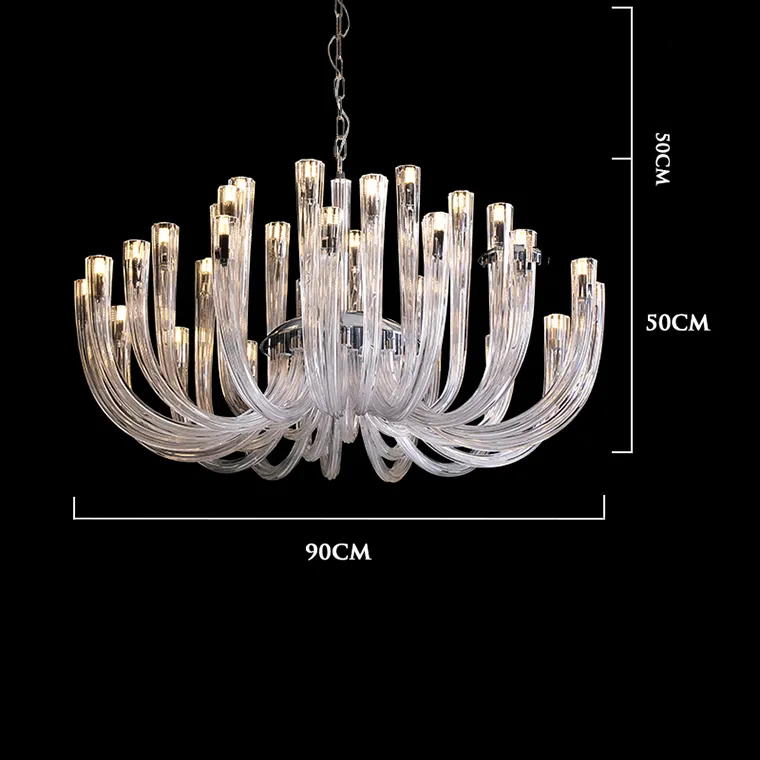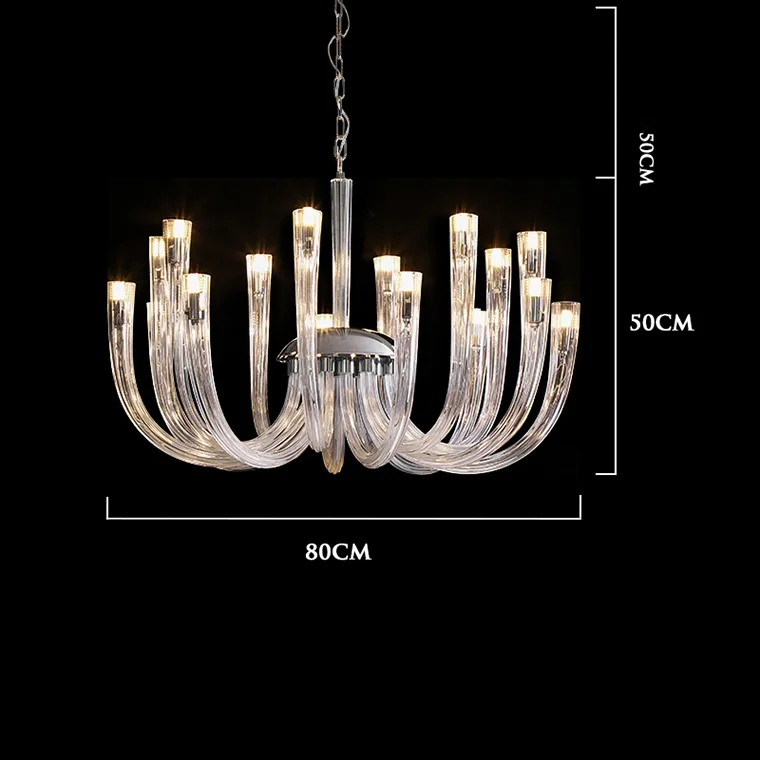 Серия дизайнерских люстр со стеклянными выгнутыми плафонами вытянутой цилиндрической формы