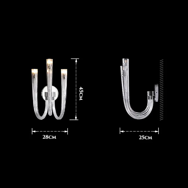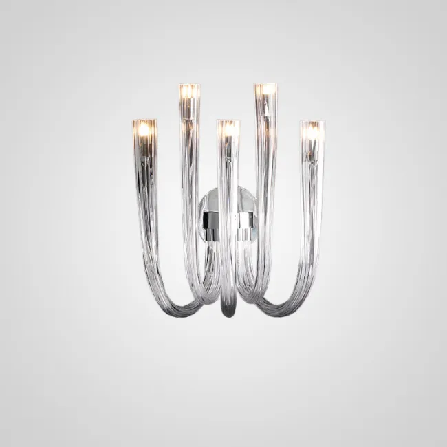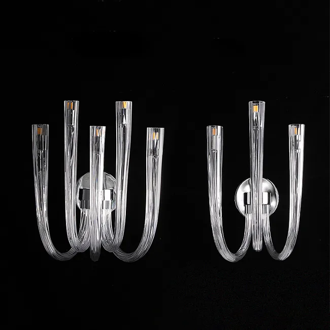Серия дизайнерских люстр со стеклянными выгнутыми плафонами вытянутой цилиндрической формы