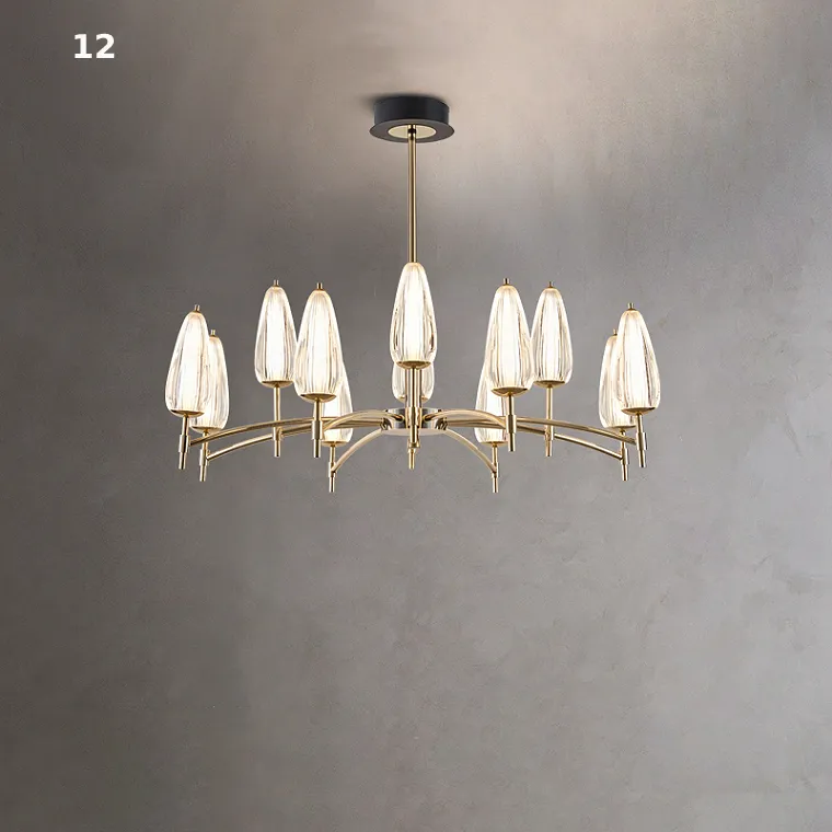 Серия светодиодных люстр со стеклянными рельефными плафонами конической формы