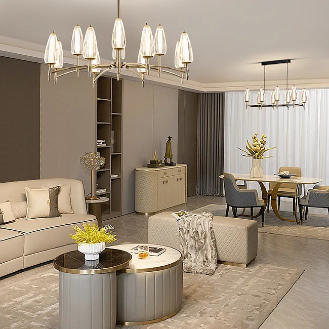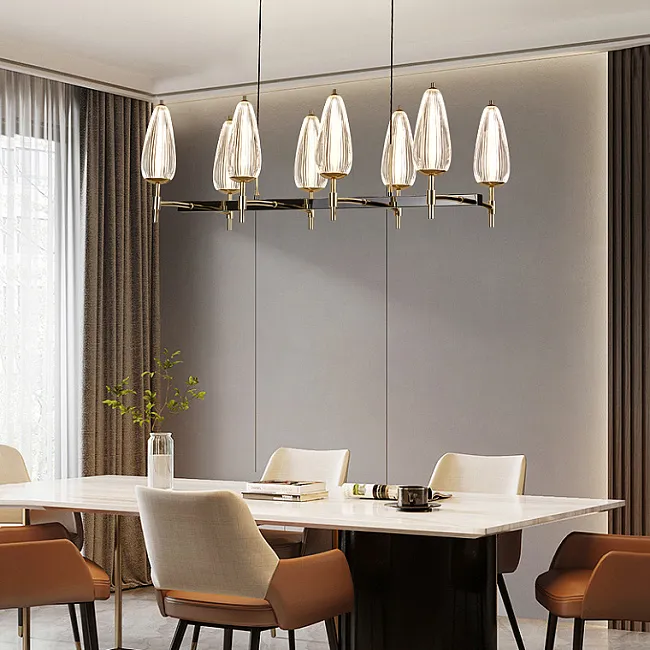 Серия светодиодных люстр со стеклянными рельефными плафонами конической формы
