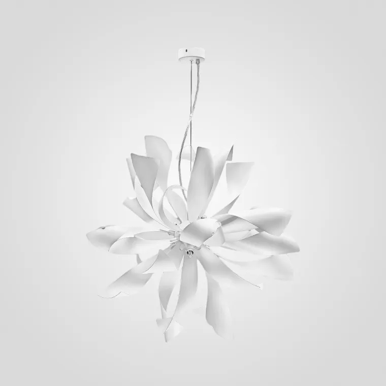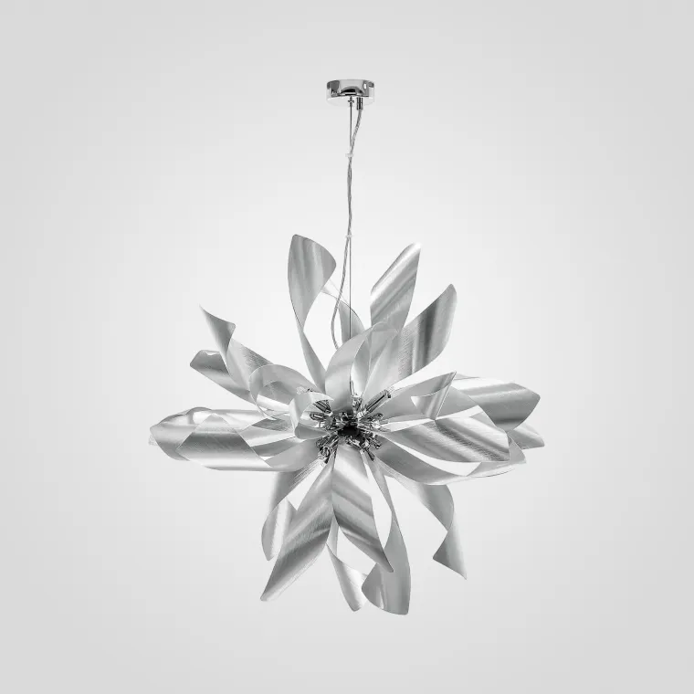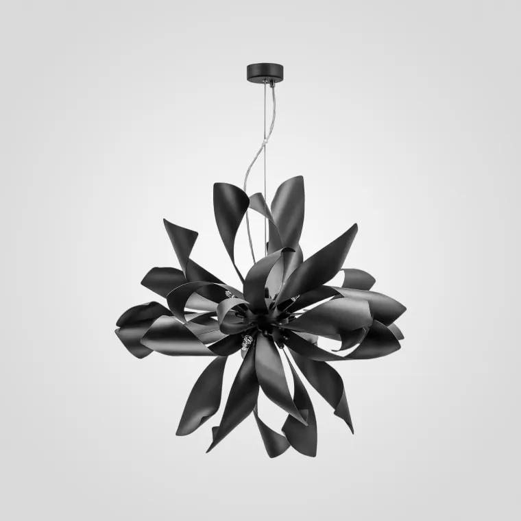 Необычная очень люстра, в жизни даже лучше и интереснее выглядит, чем на сайте на фото. Подвес длины оптимальной лично для меня. Светильник не очень тяжёлый, для любого потолка подойдёт. Лампочек шесть, и этого достаточно. Закрученные пластинки похожи на лепестки металлического цветка. Я модель в чёрном выбрала. Довольна и дизайном и качеством.
