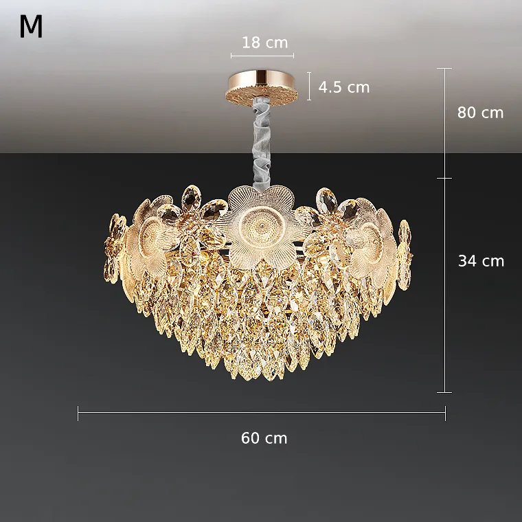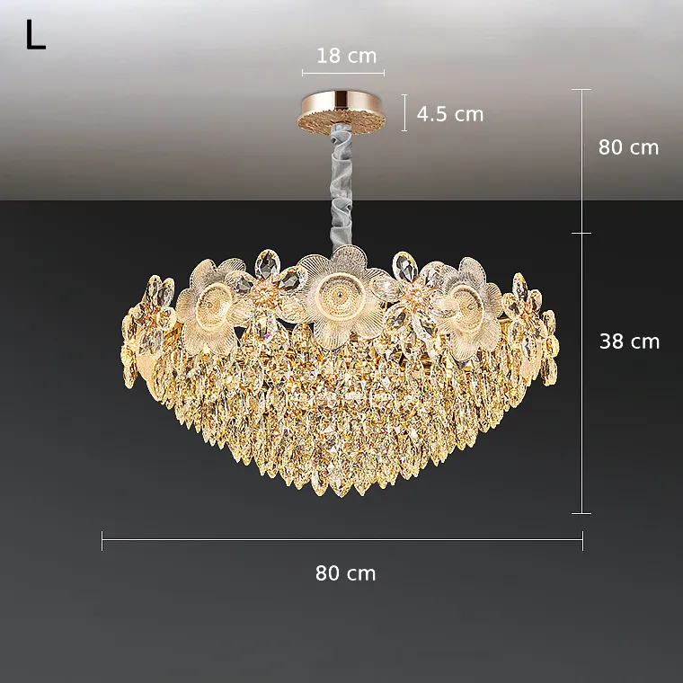 Серия люстр с многоярусным абажуром с подвесками из ограненного хрусталя и декоративных цветков из рельефного стекла
