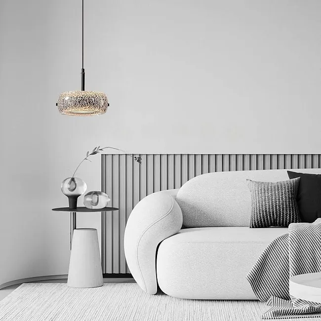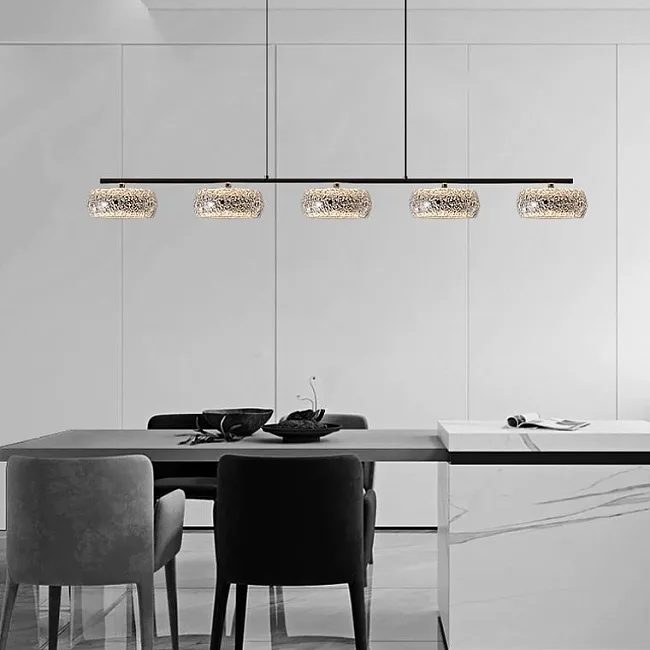 Подвесная люстра с прозрачными плафонами с эффектом кракле и двунаправленным светом