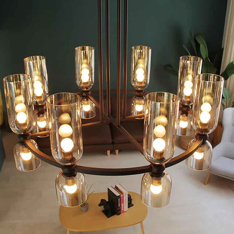 Просто роскошно эта люстра выглядит, моя гостиная с ней прям преобразилась. Необычно придуманы плафоны: они из прозрачного стекла классного янтарного цвета, одновременно вверх и вниз светят. Поэтому света в гостиной много, но он не ослепляет и не напрягает совсем. Доставили товар достаточно быстро, привезли всё целое, не одной трещинки, а я внимательно осмотрела всё)