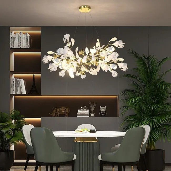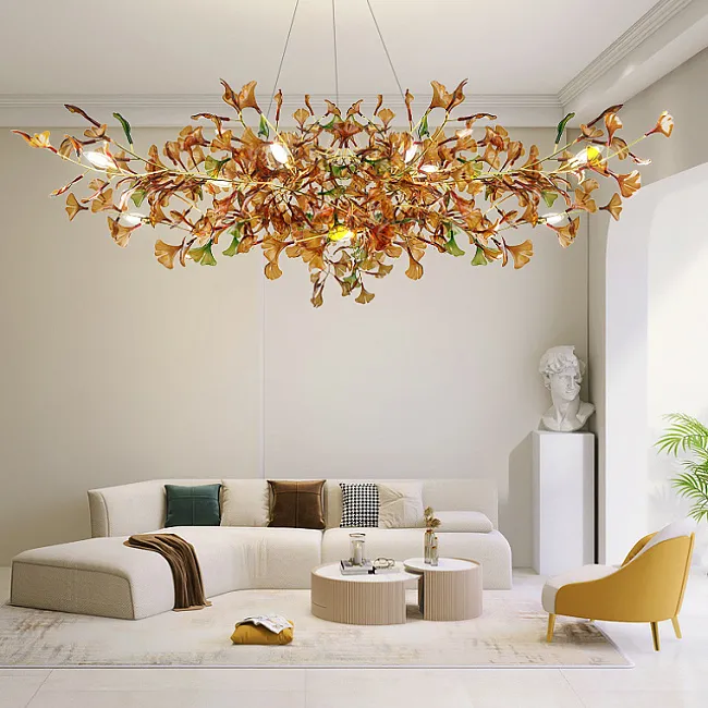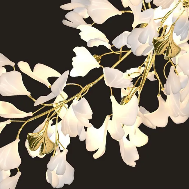 Такую роскошь я не в одном магазине не видела, это просто восторг для творческого человека, как я. Листочки так детально исполнены, что реально кажется, что настоящая крона дерева на потолке. А во включенном виде эта люстра ещё интереснее