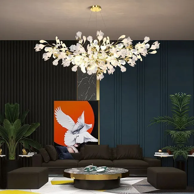 Серия люстр на ветвистом каркасе с декором на природный мотив