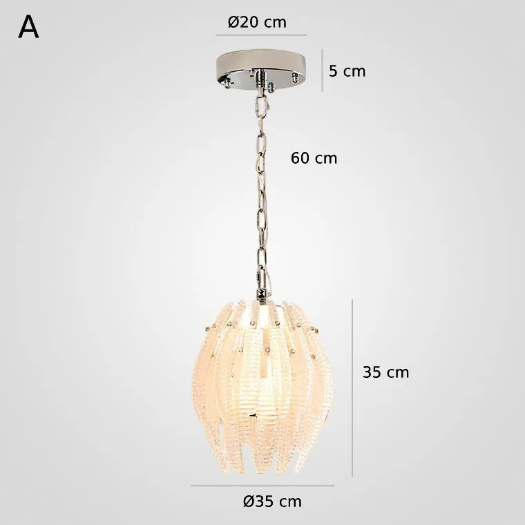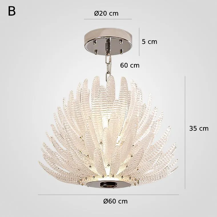 Люстра со скоплением стеклянных лепестков из рельефного стекла на цепном подвесе