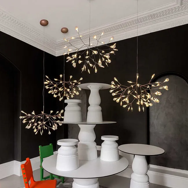 Люстра со скоплением стеклянных лепестков из рельефного стекла на цепном подвесе