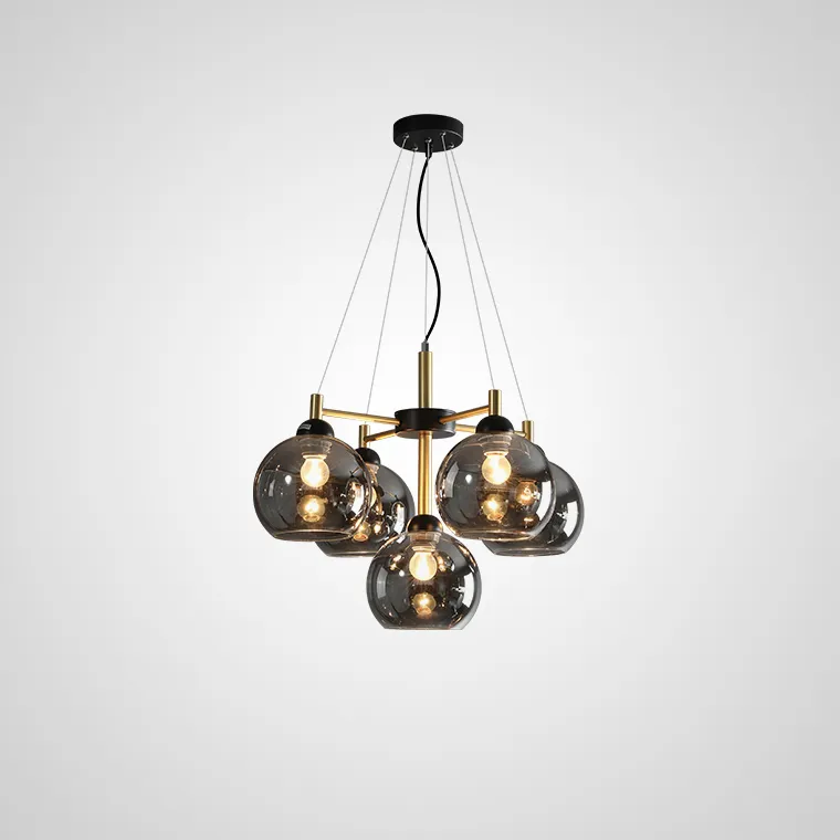 Люстра ETNA оснащена цоколем E27, что позволяет использовать различные варианты ламп. Вы можете выбрать люстру с янтарными или дымчато-серыми плафонами, а также определиться с количеством плафонов: 5, 7 или 9.