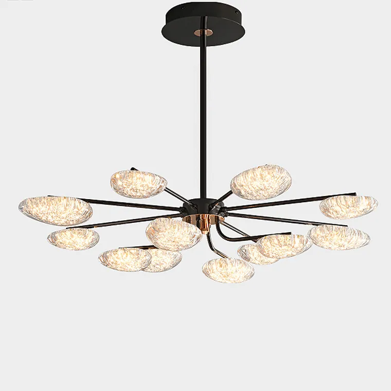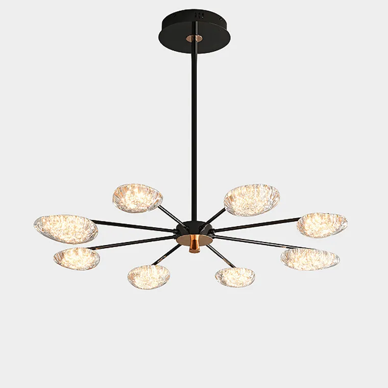 Серия светодиодных люстр на лучевом каркасе с миндалевидными рассеивателями с эффектом льда