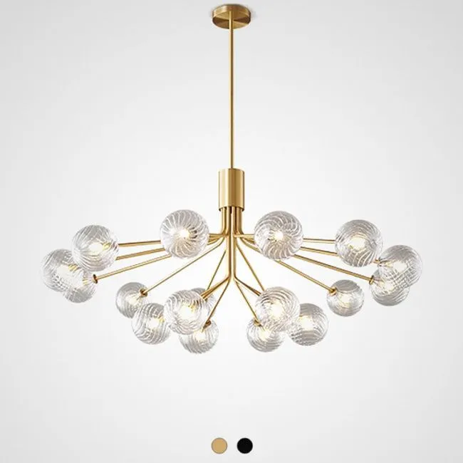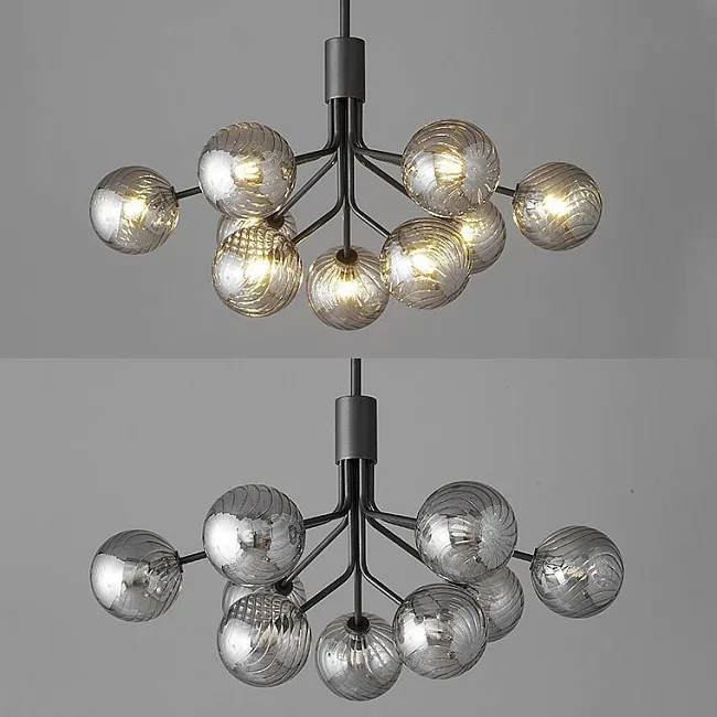 Светодиодный светильник-инсталляция со спиралевидным корпусом и шарообразными подвесами