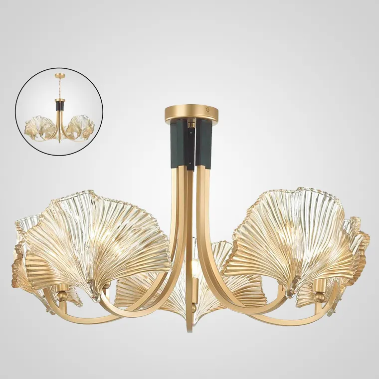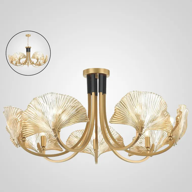 Подвесная люстра с рельефными плафонами в виде листьев лотоса