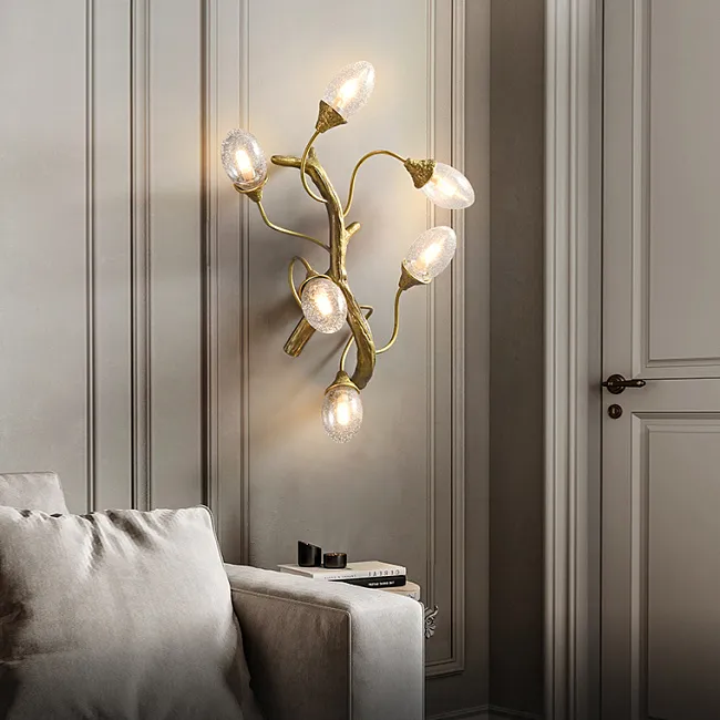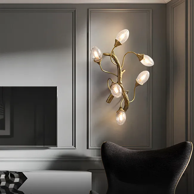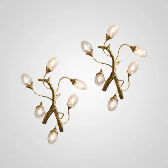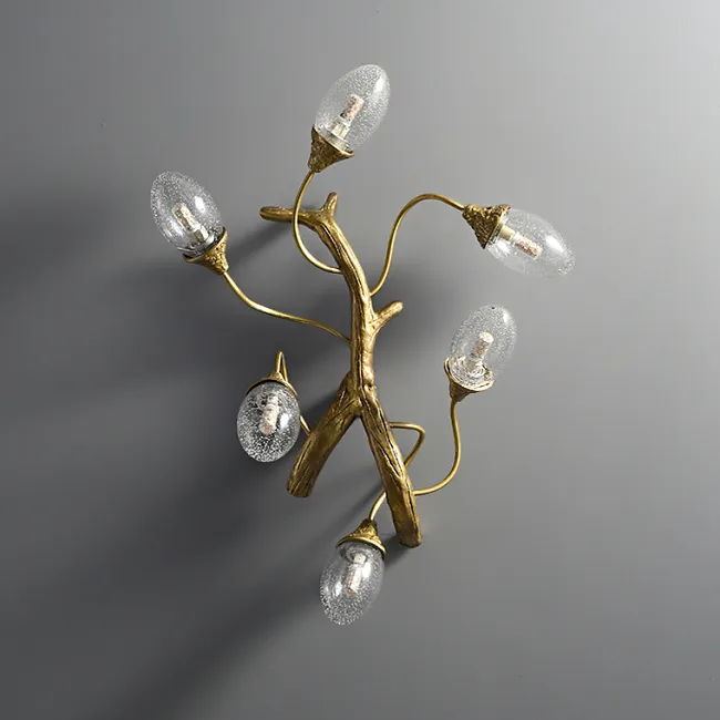 Это просто ВАУ!!! Я была бы не я, если бы не купила это. Люстра шикарная, идеально для домов с высокими потолками, как у меня. Похоже на веточку с бутонами. Стержень и его ответвления тут латунные, под бронзу сделаны. А плафоны – отдельное искусство. Они из стекла, с пузырьками внутри, сияют и красиво переливаются. Я прямо сама себе завидую!