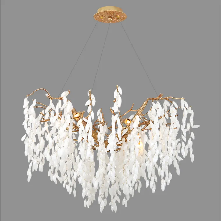 Серия каскадных люстр с декором из подвесок со стеклянными камнями на ветвистом каркасе из настоящей латуни