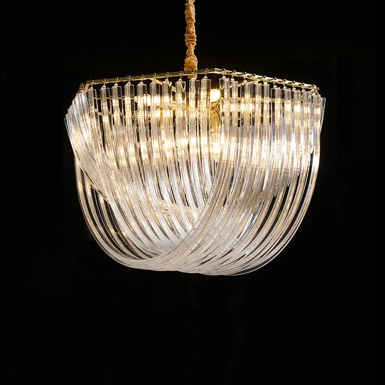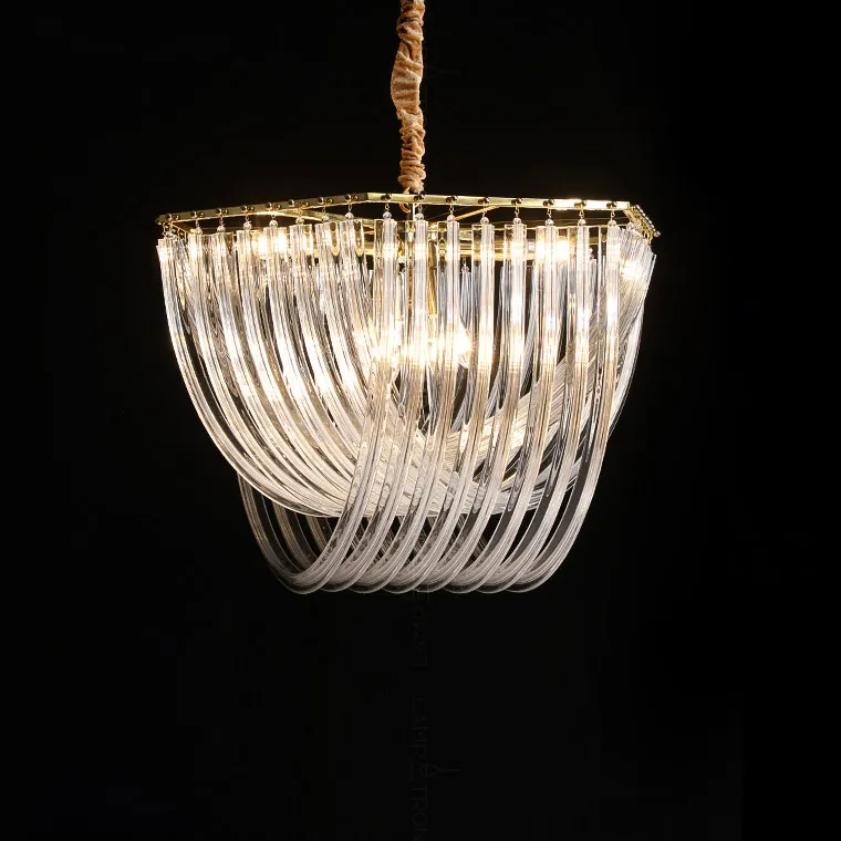 Дизайнерская люстра FLOW cо стеклянными дугами - подвесами, разной длины. Яркая, но сдержанная благодаря стеклу. Большая, но не громоздкая благодаря закруглениям. Уникальная форма, создающая образ раскрытого окна. Возникает ощущение, что теплый летний ветер запутался в белых занавесях. Современная модель по праву достойна занять самое лучшее место вашего дома.