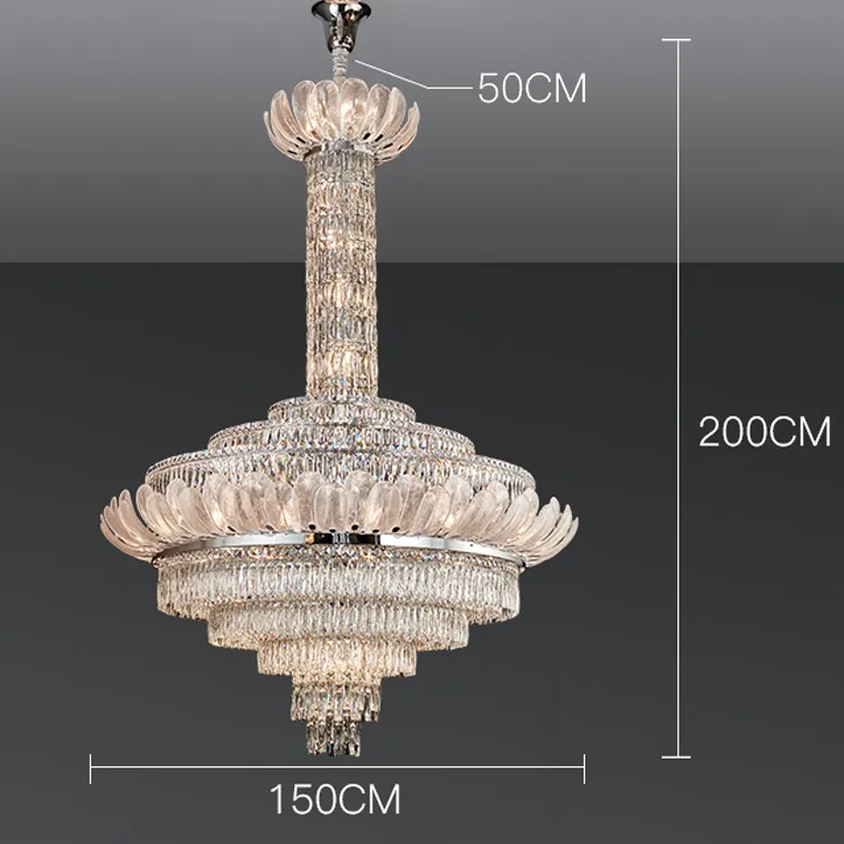 Люстра с изогнутыми вверх пластинчатыми рассеивателями в виде перьев и декором в виде хрустальных подвесок