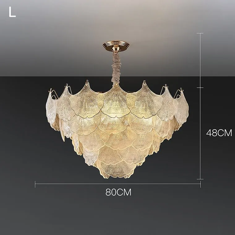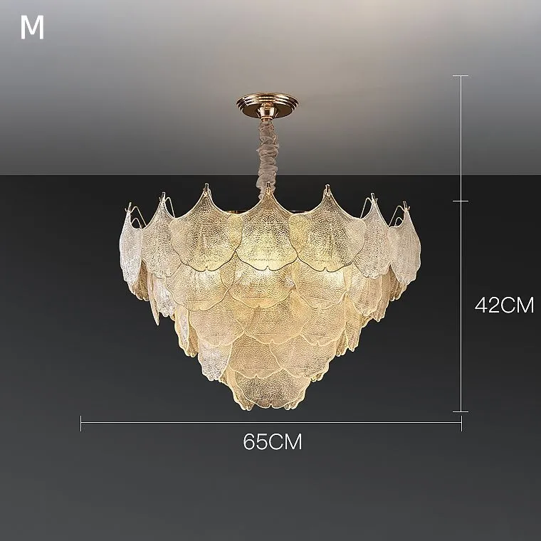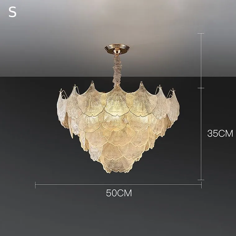 Серия люстр с многоярусным абажуром из стеклянных подвесок в виде листьев Гинкго