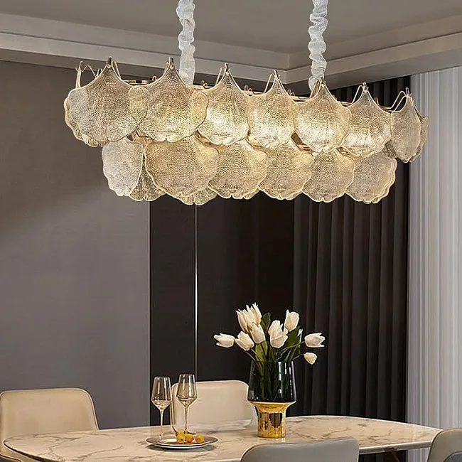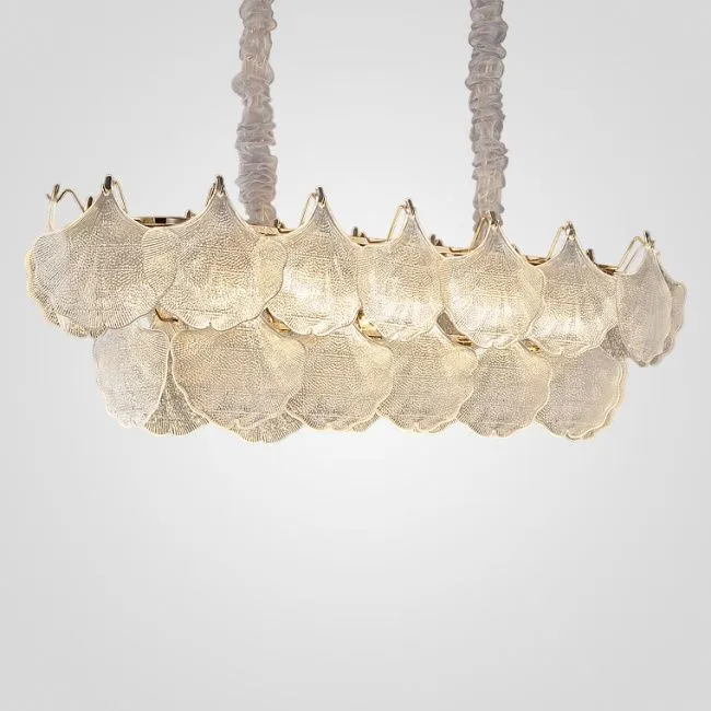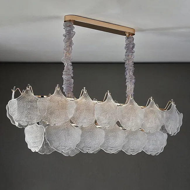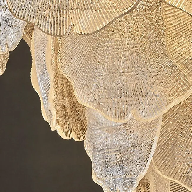 Серия люстр с многоярусным абажуром из стеклянных подвесок в виде листьев Гинкго