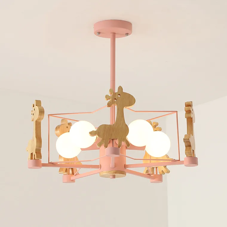 В зависимости от особенностей интерьера детской комнаты можно купить люстру GIRAFFE в России недорого розового, серого или зеленого цвета. Оригинальный дизайн с деревянными фигурками животных и мягкий свет будут радовать ребенка каждый вечер. Отличное современное украшение и идеальное освещение, независимо от времени года и увлечений малыша.