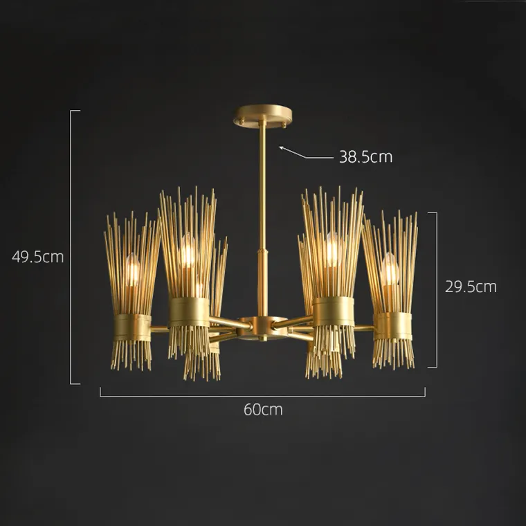 Дизайнерская люстра на лучевом каркасе с латунными рассеивателями в виде металлических стержней