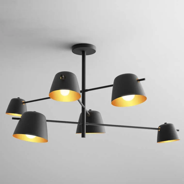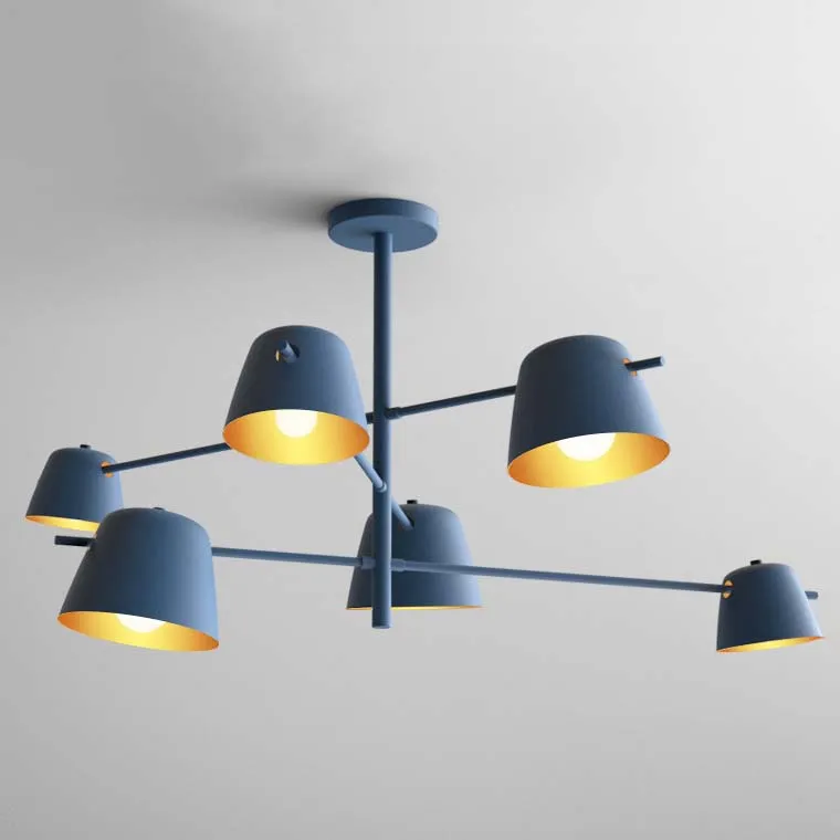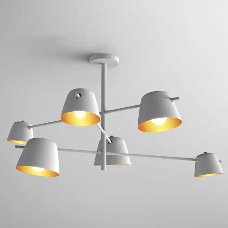 Люстра GODA эта модель с плафонами на поворотных штангах пепельного черного, белого или черничного оттенка станет стильным украшением современных интерьеров в скандинавском стиле и лофтах. Она практична, оригинально смотрится, при этом её конструкция достаточно проста. Свежо, легко и эффектно!