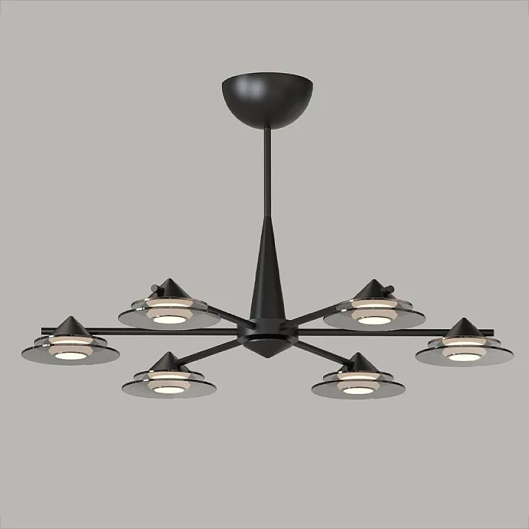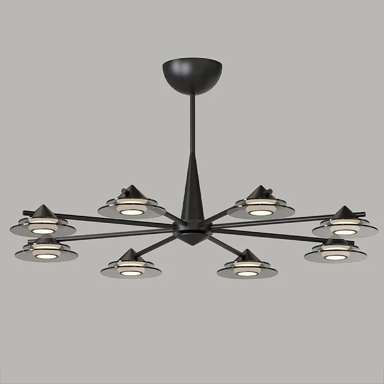 Серия светодиодных люстр с лучевым каркасом и плафонами конической формы с двумя дисками из дымчатого стекла