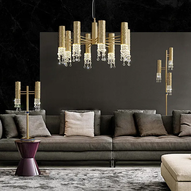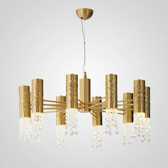 Дизайнерская люстра GRANADA в европейском стиле с металлическими пластинами и стекляными подвесными кристаллами на цепочках