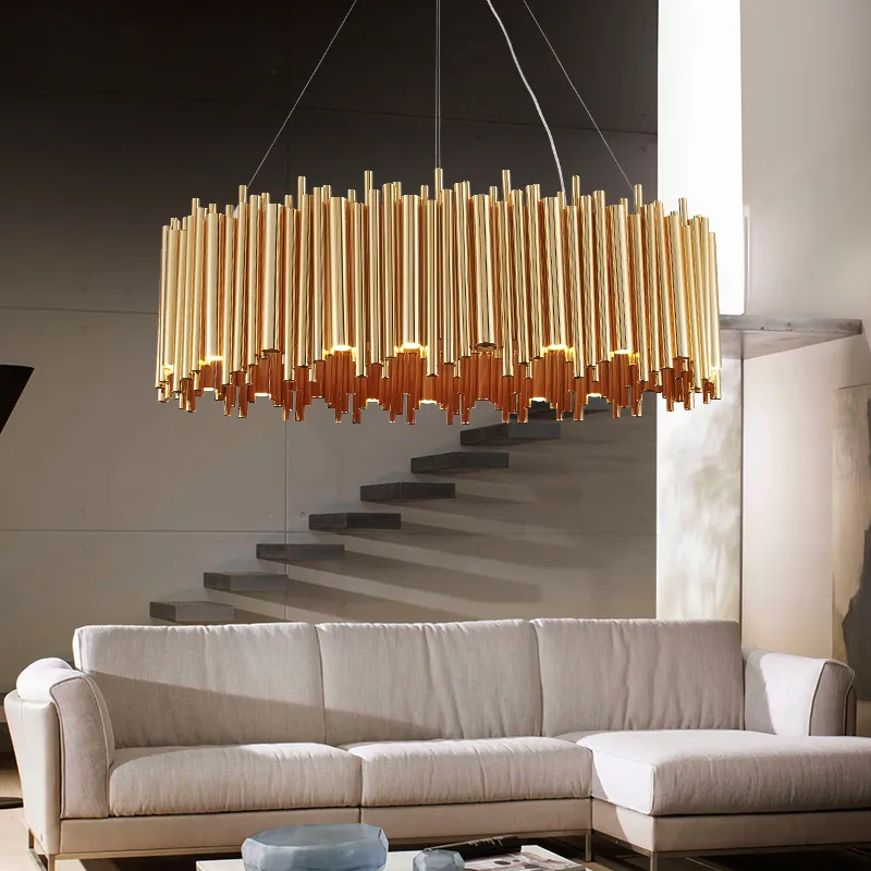 Подвесная люстра GRANDA в стиле минимализм из трубок разного диаметра и высоты.
