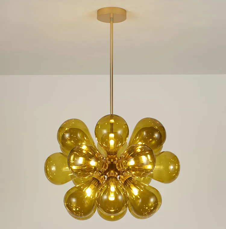 Дизайнерская люстра со стеклянными плафонами в нескольких оттенках