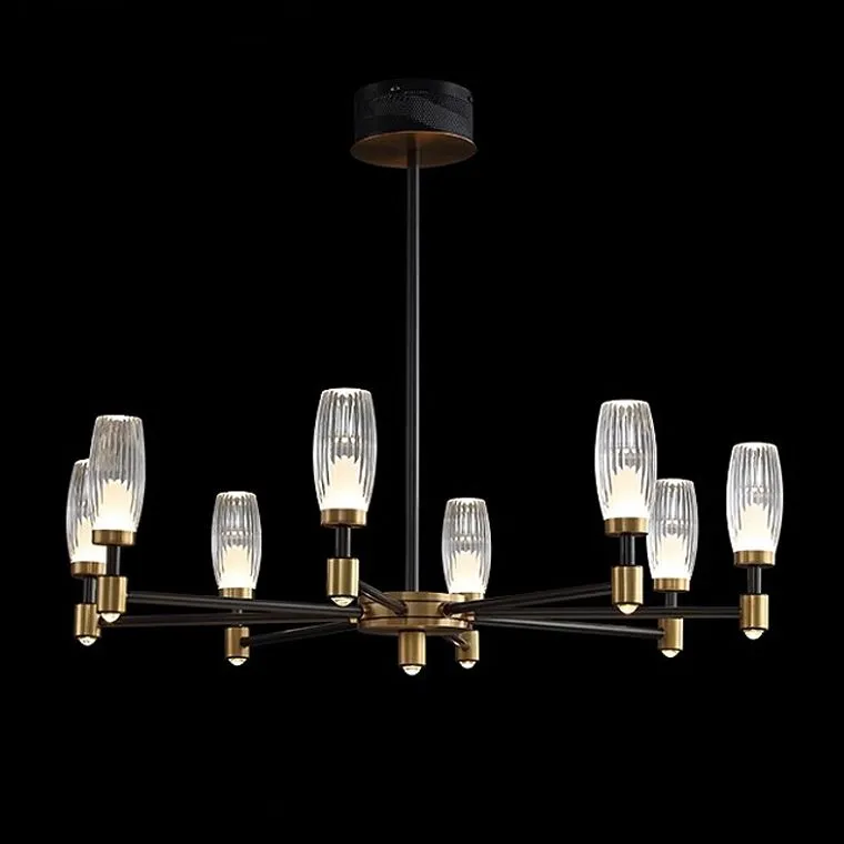 Рельефность плафонов добавляет глубины и объемности световому полотну, создавая игру светотеней и переливов, словно абстрактную картину, живую и колоритную. Каждый элемент этой люстры, будучи сам по себе произведением искусства, взаимодействует с остальными, создавая удивительный эффект легкости и грации.