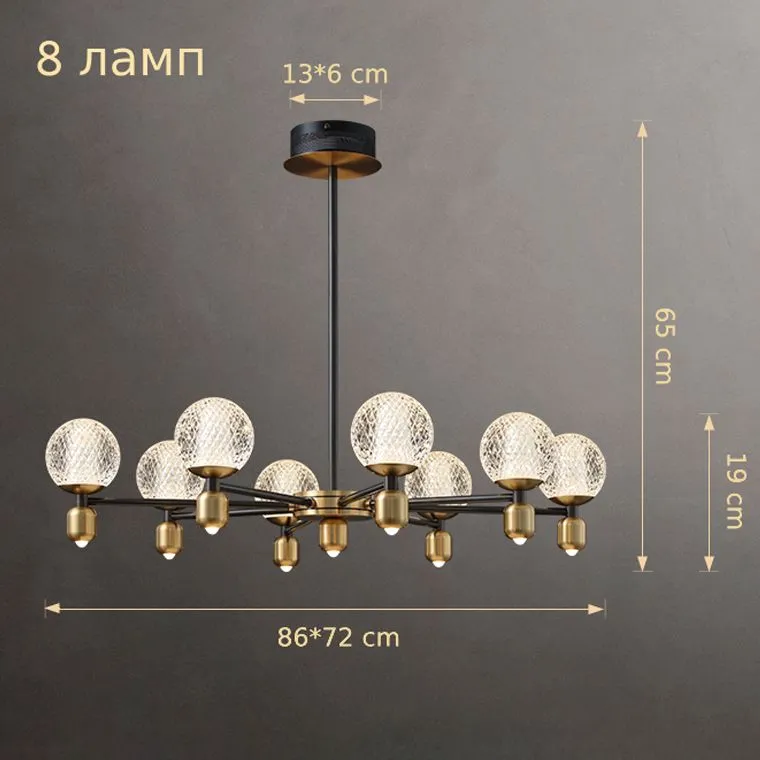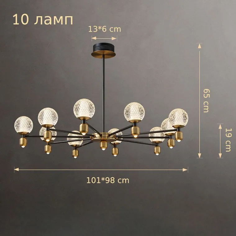Всё по классике вроде тут, но в более современном исполнении что ли. Плафоны в виде шаров с выпуклым узором. Очень элегантно. И задачи свои люстра решает на отлично. Света нашей семье в гостиной хватает, но мы взяли вариант с 10 лампами. Для комнаты поменьше можно было и меньше. Понравилось ещё, в каком виде товар пришёл. Целый, упакован идеально, ни единого дефекта.