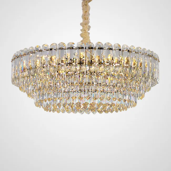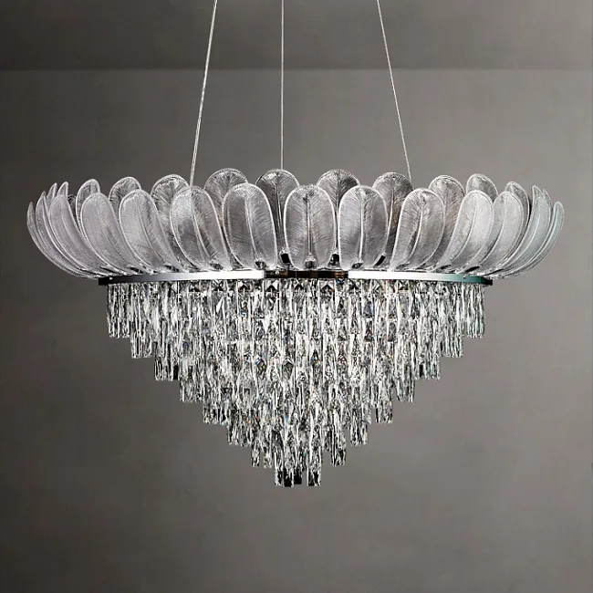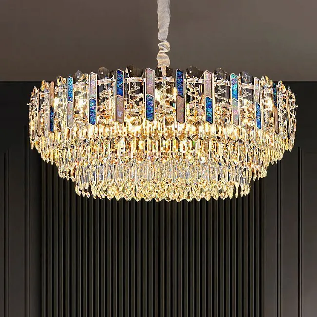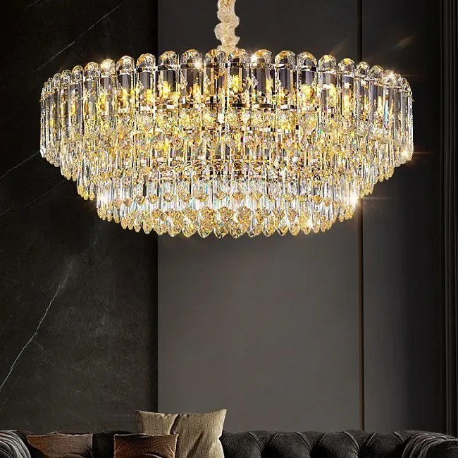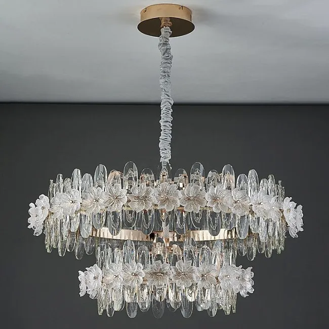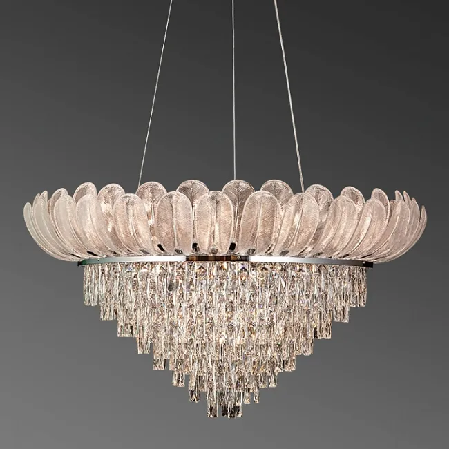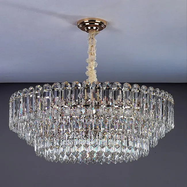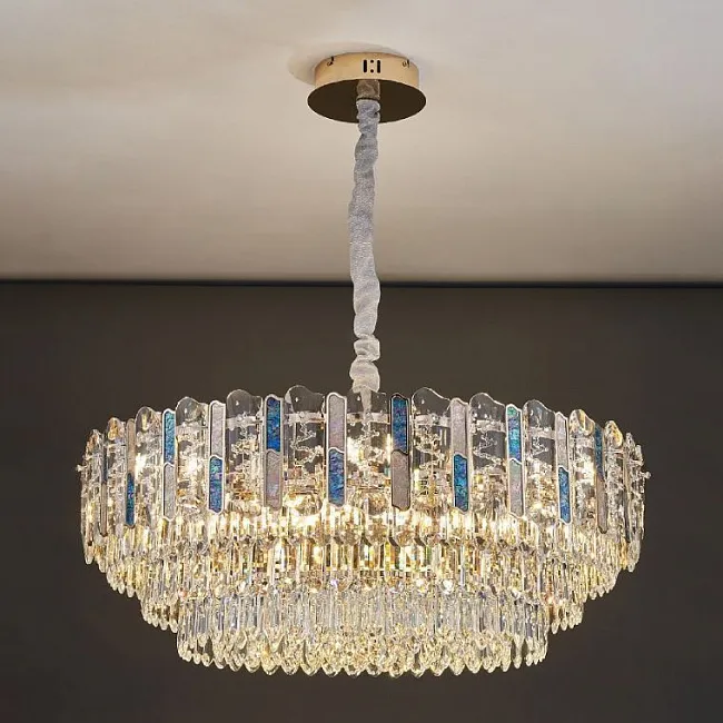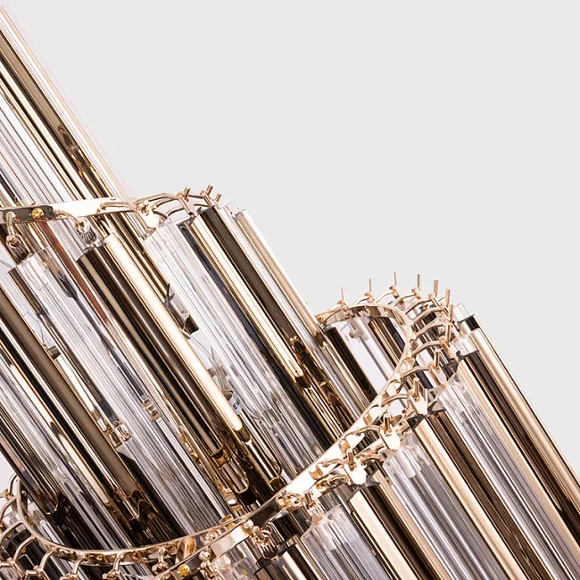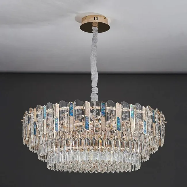 Серия люстр в виде комбинации колец и хрустальных подвесок на металлическом каркасе